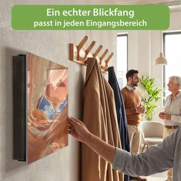 Bringe Ordnung und Eleganz in deinen Eingangsbereich mit dem banjado Schlüsselkasten Motiv Motiv Antelope Canyon 3. Die moderne Schlüsselbox kombiniert funktionales Design mit hochwertiger Verarbeitung und wird so zu einem echten Hingucker in Flur, Büro oder Ferienwohnung. ✅ Stilvolle Schlüsselaufbewahrung mit Glasfront im Motiv Motiv Antelope Canyon 3 Der Design-Schlüsselkasten Motiv Motiv Antelope Canyon 3 bietet Platz für bis zu 50 Schlüssel, die auf 5 stabilen Reihen mit je 10 Haken übersichtlich verstaut werden. Mit seinen kompakten Maßen von 30 x 30 x 5 cm passt die Schlüsselbox perfekt auch in kleinere Räume. Der schwarz lackierte Stahlkorpus mit rechts angeschlagenem Türscharnier harmoniert mit der Glasfront und fügt sich nahtlos in jedes Wohnambiente ein. Ob als Schlüsselorganizer für Zuhause oder als praktische Lösung für Büros, Praxen und Gewerbe, der banjado Schlüsselkasten sorgt für Ordnung und Übersicht. Dank der magnetischen, mit Kreidestiften beschreibbaren Glasfront kannst du Notizen anheften oder Termine direkt auf der Oberfläche festhalten. Die Schlüsselbox Motiv Motiv Antelope Canyon 3 zur Wandmontage wird inklusive Befestigungsmaterial geliefert und ist schnell angebracht. So hast du deine Schlüssel jederzeit griffbereit und zugleich stilvoll verstaut. Mit diesem banjado Schlüsselkasten Motiv Motiv Antelope Canyon 3 kombinierst du praktische Aufbewahrung mit stilvollem Wohndesign. Ob privat oder geschäftlich, die Schlüsselbox sorgt für mehr Ordnung, Übersicht und ein wohnliches Ambiente.Vorteile im Überblick