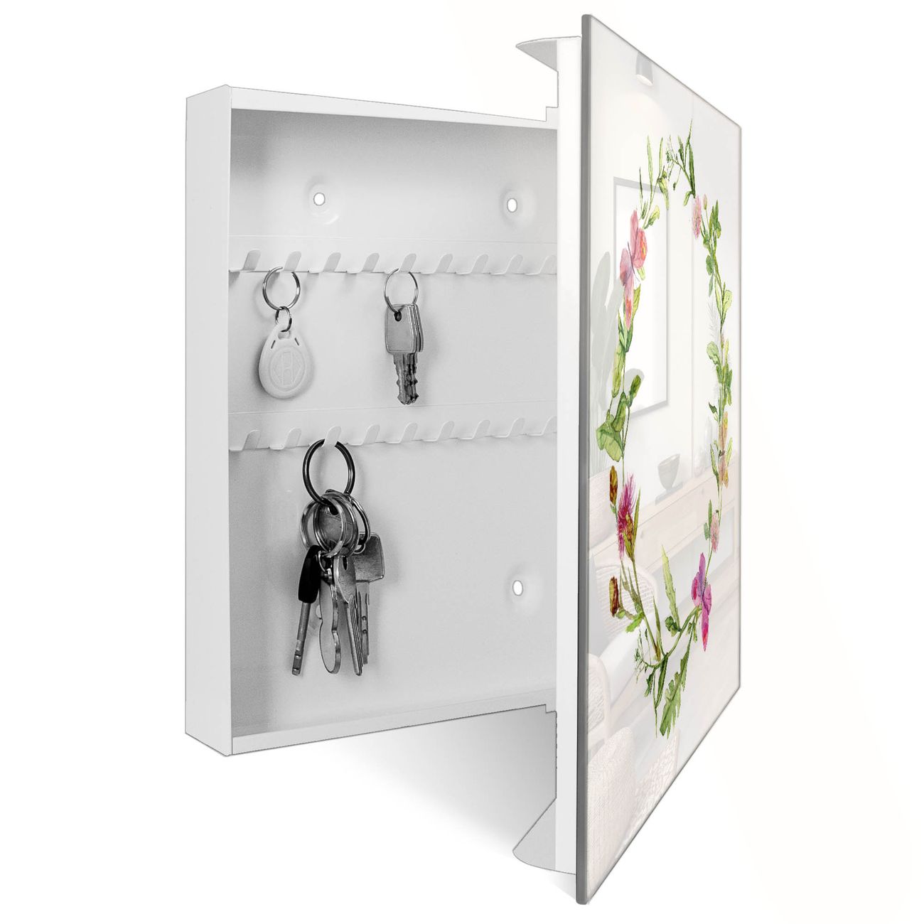 Schlüsselkasten Glas Motiv Aquarell Blumenring