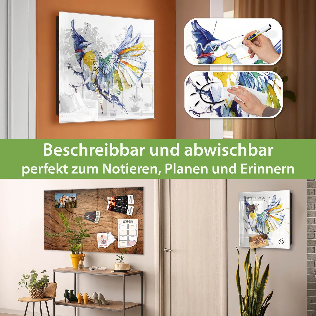 ✅ Magnetisch und mit Kreidestift beschreibbar, gehärtetes Glas, links angeschlagene TürOrdnung und Design in einem
