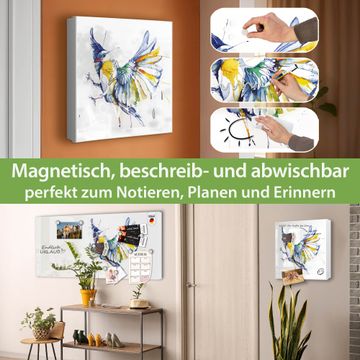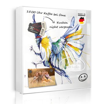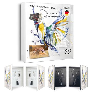 Bringe Ordnung und Eleganz in deinen Eingangsbereich mit dem banjado Schlüsselkasten Motiv Motiv Aquarell Vogel. Die moderne Schlüsselbox kombiniert funktionales Design mit hochwertiger Verarbeitung und wird so zu einem echten Hingucker in Flur, Büro oder Ferienwohnung. ✅ Stilvolle Schlüsselaufbewahrung mit Motiv Motiv Aquarell Vogel Der Design-Schlüsselkasten Motiv Motiv Aquarell Vogel bietet Platz für bis zu 32 Schlüssel, die auf 4 stabilen Reihen mit je 8 Haken übersichtlich verstaut werden. Mit seinen kompakten Maßen von 30 x 30 x 5 cm passt die Schlüsselbox perfekt auch in kleinere Räume. Der weiß lackierte Stahlkorpus mit links angeschlagenem Türscharnier harmoniert mit gedruckten Folie auf der Front und fügt sich nahtlos in jedes Wohnambiente ein. Ob als Schlüsselorganizer für Zuhause oder als praktische Lösung für Büros, Praxen und Gewerbe, der banjado Schlüsselkasten sorgt für Ordnung und Übersicht. Dank der magnetischen, mit Kreidestiften beschreibbaren Folie auf der Front kannst du Notizen anheften oder Termine direkt auf der Oberfläche festhalten. Die Schlüsselbox Motiv Motiv Aquarell Vogel zur Wandmontage wird inklusive Befestigungsmaterial geliefert und ist schnell angebracht. So hast du deine Schlüssel jederzeit griffbereit und zugleich stilvoll verstaut. Mit diesem banjado Schlüsselkasten Motiv Motiv Aquarell Vogel kombinierst du praktische Aufbewahrung mit stilvollem Wohndesign. Ob privat oder geschäftlich, die Schlüsselbox sorgt für mehr Ordnung, Übersicht und ein wohnliches Ambiente.Vorteile im Überblick