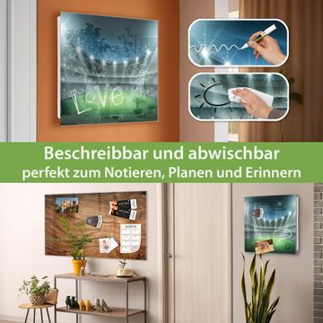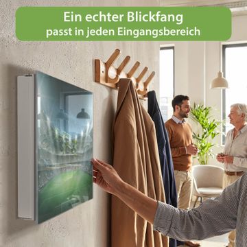 Bringe Ordnung und Eleganz in deinen Eingangsbereich mit dem banjado Schlüsselkasten Motiv Motiv Arena. Die moderne Schlüsselbox kombiniert funktionales Design mit hochwertiger Verarbeitung und wird so zu einem echten Hingucker in Flur, Büro oder Ferienwohnung. ✅ Stilvolle Schlüsselaufbewahrung mit Glasfront im Motiv Motiv Arena Der Design-Schlüsselkasten Motiv Motiv Arena bietet Platz für bis zu 50 Schlüssel, die auf 5 stabilen Reihen mit je 10 Haken übersichtlich verstaut werden. Mit seinen kompakten Maßen von 30 x 30 x 5 cm passt die Schlüsselbox perfekt auch in kleinere Räume. Der weiß lackierte Stahlkorpus mit rechts angeschlagenem Türscharnier harmoniert mit der Glasfront und fügt sich nahtlos in jedes Wohnambiente ein. Ob als Schlüsselorganizer für Zuhause oder als praktische Lösung für Büros, Praxen und Gewerbe, der banjado Schlüsselkasten sorgt für Ordnung und Übersicht. Dank der magnetischen, mit Kreidestiften beschreibbaren Glasfront kannst du Notizen anheften oder Termine direkt auf der Oberfläche festhalten. Die Schlüsselbox Motiv Motiv Arena zur Wandmontage wird inklusive Befestigungsmaterial geliefert und ist schnell angebracht. So hast du deine Schlüssel jederzeit griffbereit und zugleich stilvoll verstaut. Mit diesem banjado Schlüsselkasten Motiv Motiv Arena kombinierst du praktische Aufbewahrung mit stilvollem Wohndesign. Ob privat oder geschäftlich, die Schlüsselbox sorgt für mehr Ordnung, Übersicht und ein wohnliches Ambiente.Vorteile im Überblick