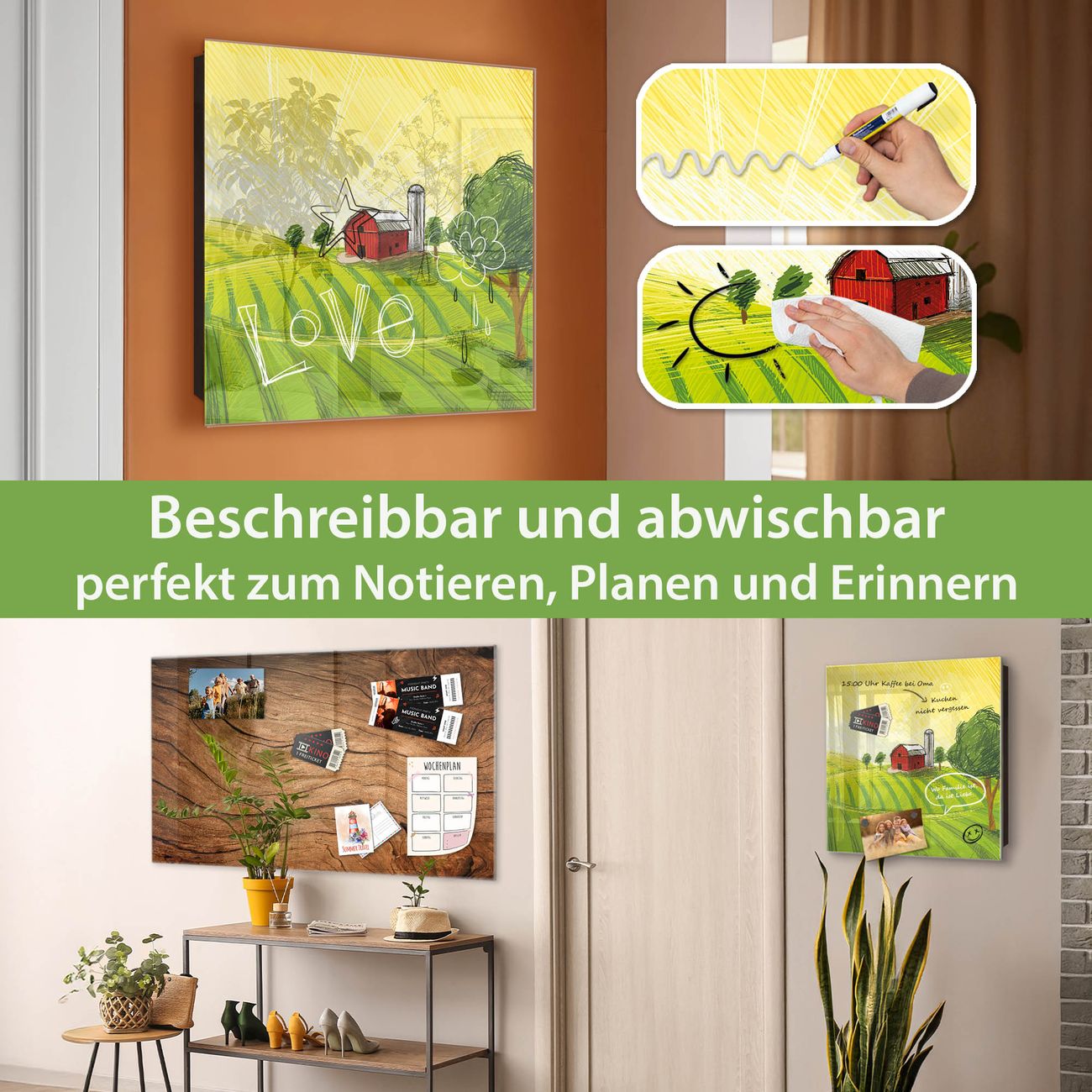 ✅ Magnetisch und mit Kreidestift beschreibbar, gehärtetes Glas, rechts angeschlagene TürOrdnung und Design in einem