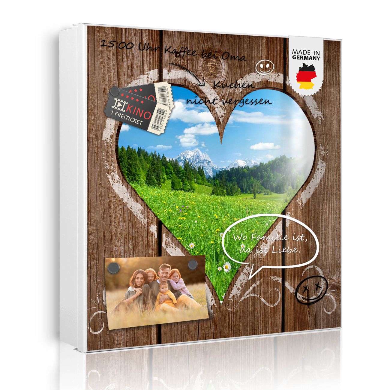Bringe Ordnung und Eleganz in deinen Eingangsbereich mit dem banjado Schlüsselkasten Motiv Motiv Ausblick mit Herz. Die moderne Schlüsselbox kombiniert funktionales Design mit hochwertiger Verarbeitung und wird so zu einem echten Hingucker in Flur, Büro oder Ferienwohnung. ✅ Stilvolle Schlüsselaufbewahrung mit Motiv Motiv Ausblick mit Herz Der Design-Schlüsselkasten Motiv Motiv Ausblick mit Herz bietet Platz für bis zu 32 Schlüssel, die auf 4 stabilen Reihen mit je 8 Haken übersichtlich verstaut werden. Mit seinen kompakten Maßen von 30 x 30 x 5 cm passt die Schlüsselbox perfekt auch in kleinere Räume. Der weiß lackierte Stahlkorpus mit rechts angeschlagenem Türscharnier harmoniert mit gedruckten Folie auf der Front und fügt sich nahtlos in jedes Wohnambiente ein. Ob als Schlüsselorganizer für Zuhause oder als praktische Lösung für Büros, Praxen und Gewerbe, der banjado Schlüsselkasten sorgt für Ordnung und Übersicht. Dank der magnetischen, mit Kreidestiften beschreibbaren Folie auf der Front kannst du Notizen anheften oder Termine direkt auf der Oberfläche festhalten. Die Schlüsselbox Motiv Motiv Ausblick mit Herz zur Wandmontage wird inklusive Befestigungsmaterial geliefert und ist schnell angebracht. So hast du deine Schlüssel jederzeit griffbereit und zugleich stilvoll verstaut. Mit diesem banjado Schlüsselkasten Motiv Motiv Ausblick mit Herz kombinierst du praktische Aufbewahrung mit stilvollem Wohndesign. Ob privat oder geschäftlich, die Schlüsselbox sorgt für mehr Ordnung, Übersicht und ein wohnliches Ambiente.Vorteile im Überblick