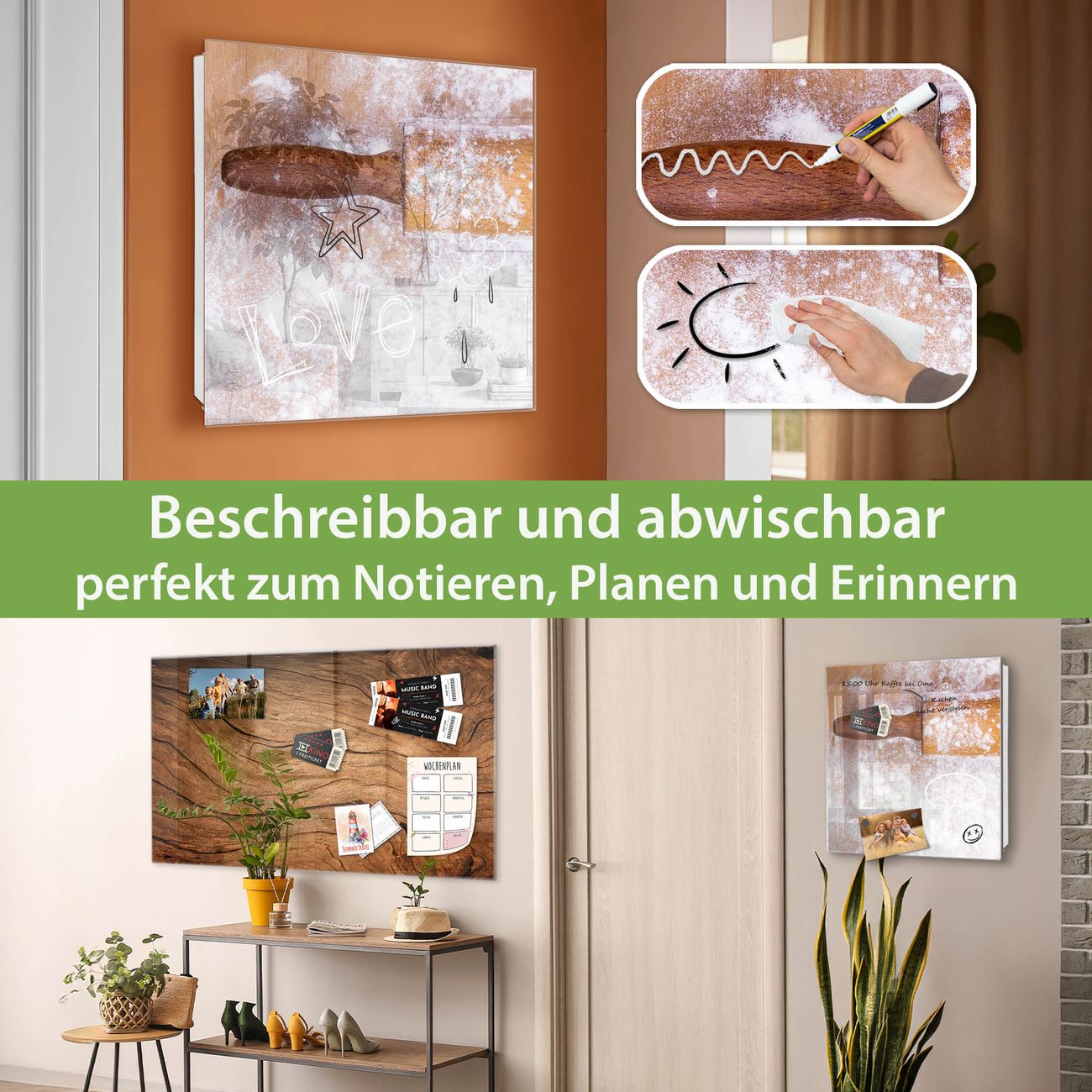 ✅ Magnetisch und mit Kreidestift beschreibbar, gehärtetes Glas, rechts angeschlagene TürOrdnung und Design in einem