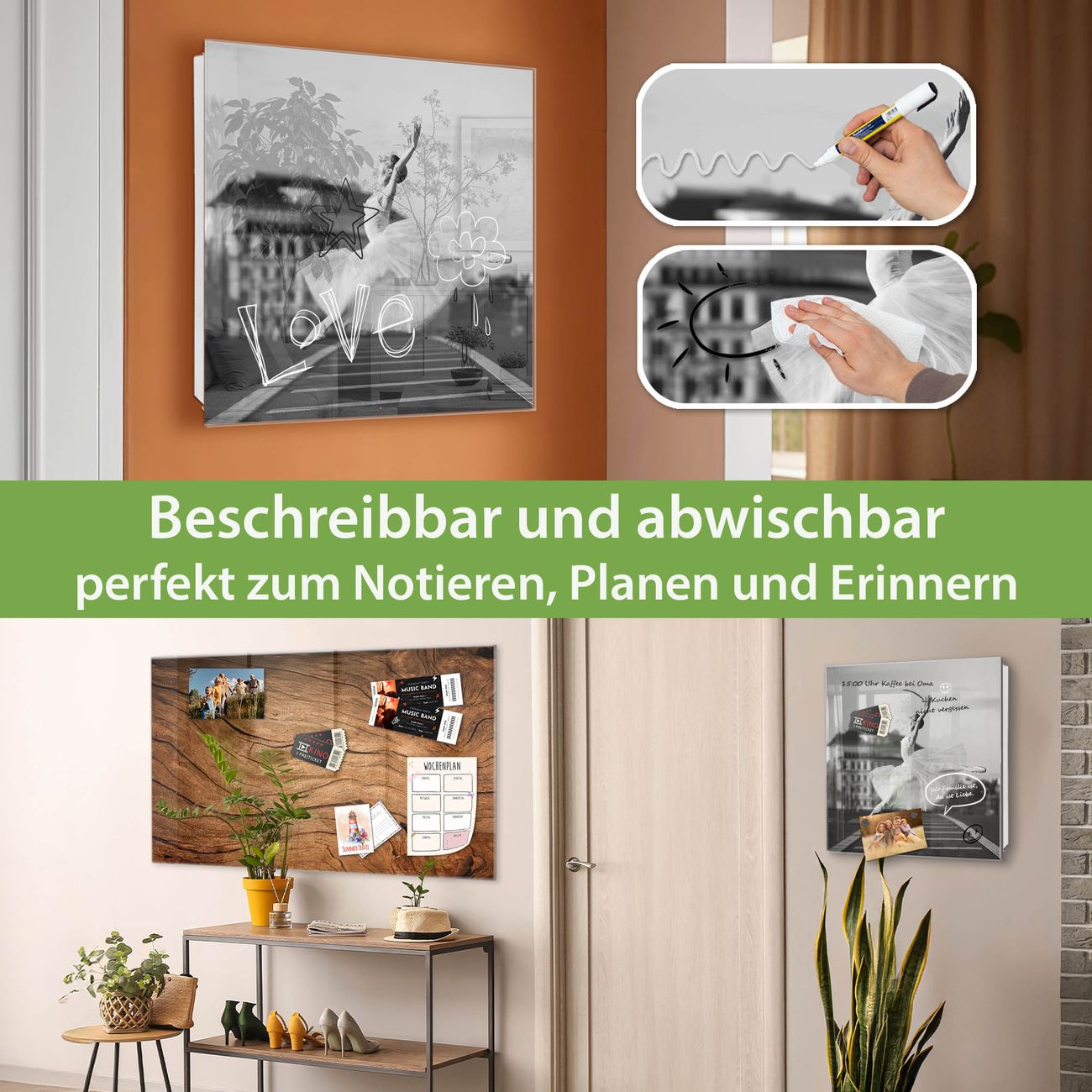 ✅ Magnetisch und mit Kreidestift beschreibbar, gehärtetes Glas, rechts angeschlagene TürOrdnung und Design in einem