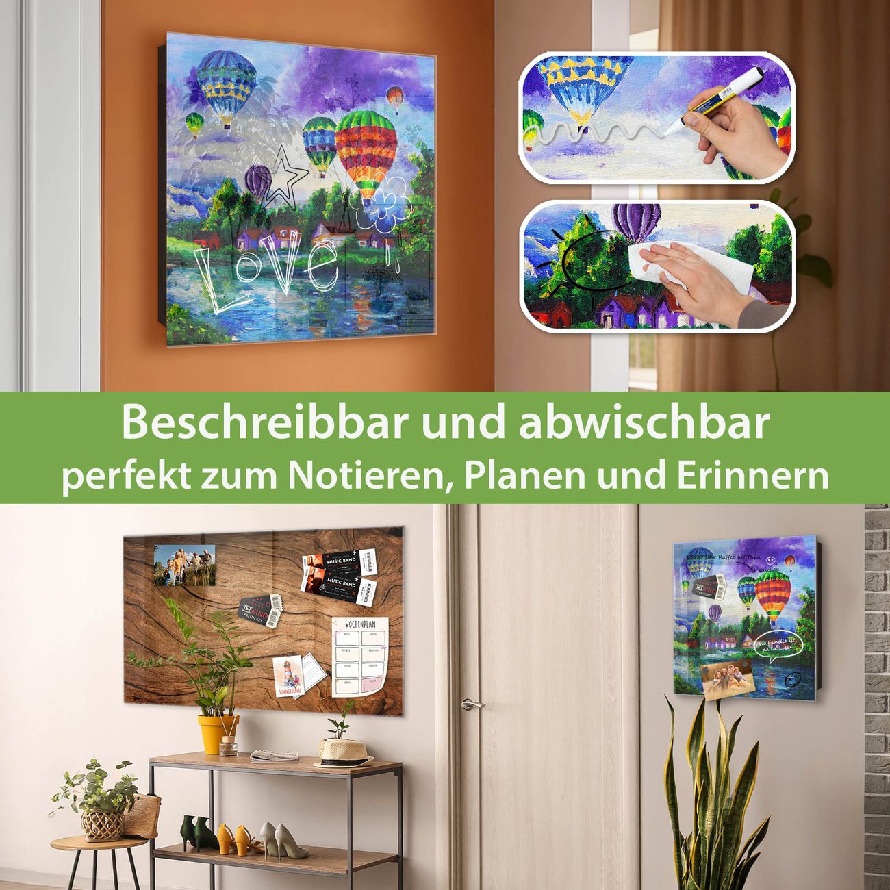 ✅ Magnetisch und mit Kreidestift beschreibbar, gehärtetes Glas, rechts angeschlagene TürOrdnung und Design in einem
