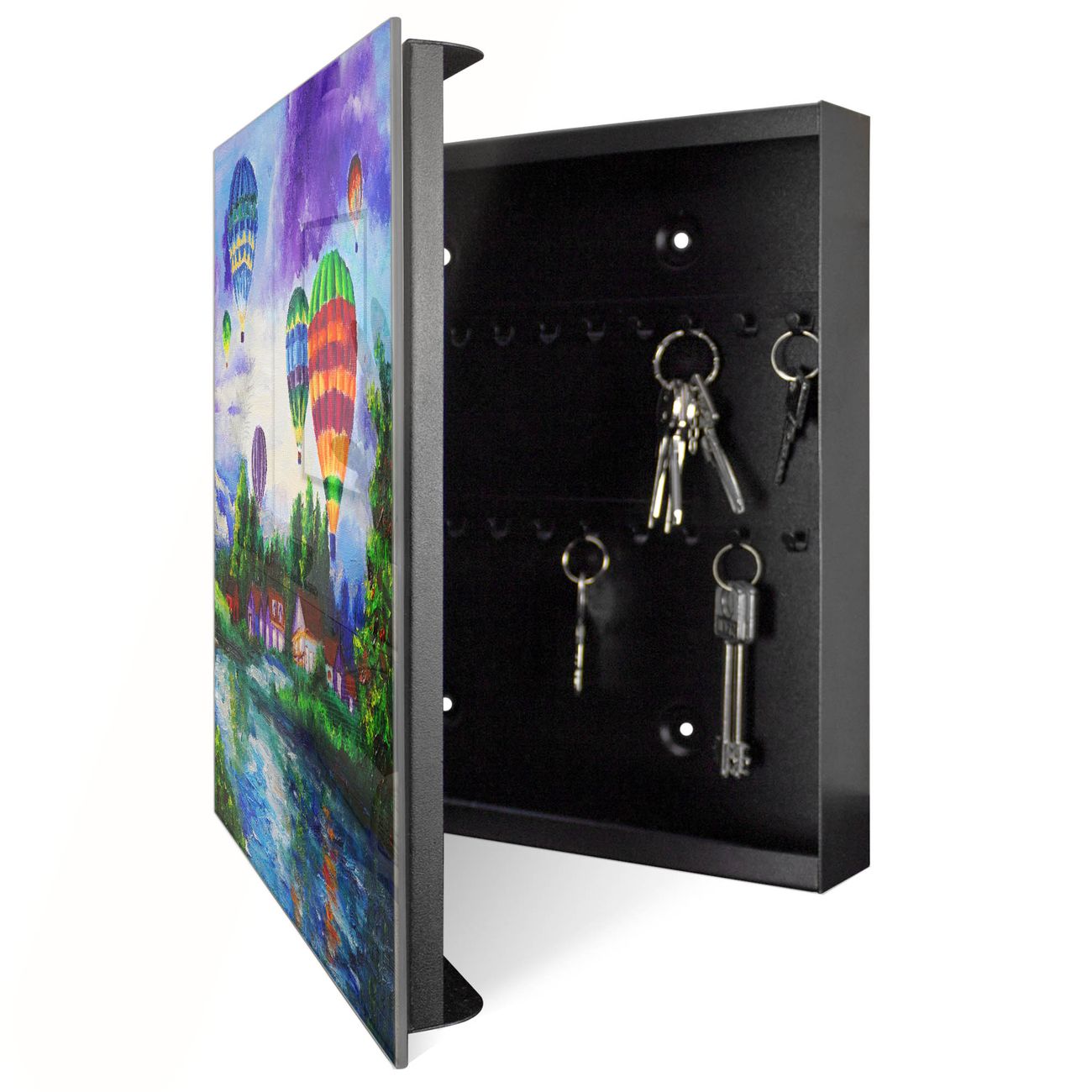 Schlüsselkasten Glas Motiv Ballons In Lila Wolken