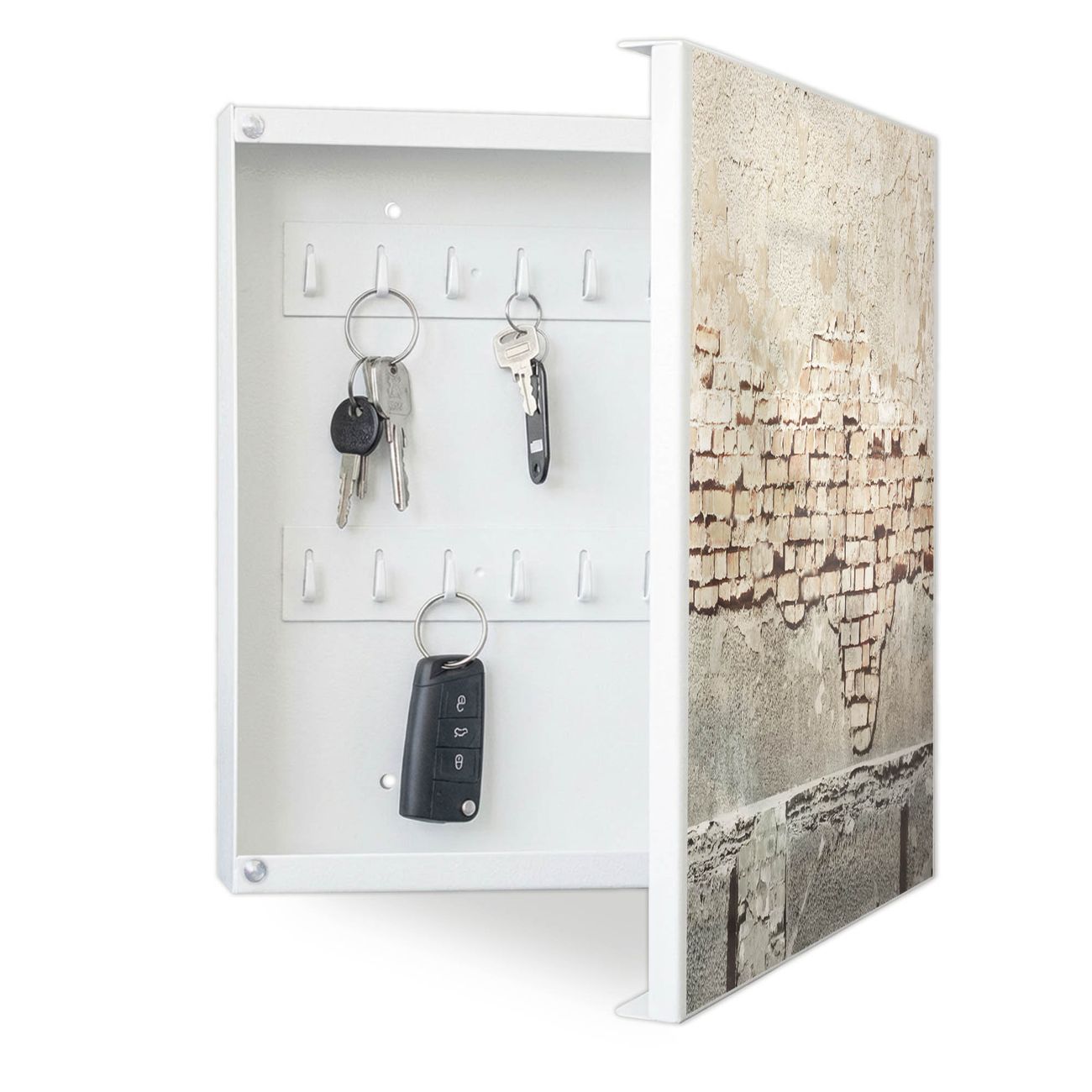 Bringe Ordnung und Eleganz in deinen Eingangsbereich mit dem banjado Schlüsselkasten Motiv Motiv Baulücke. Die moderne Schlüsselbox kombiniert funktionales Design mit hochwertiger Verarbeitung und wird so zu einem echten Hingucker in Flur, Büro oder Ferienwohnung. ✅ Stilvolle Schlüsselaufbewahrung mit Motiv Motiv Baulücke Der Design-Schlüsselkasten Motiv Motiv Baulücke bietet Platz für bis zu 32 Schlüssel, die auf 4 stabilen Reihen mit je 8 Haken übersichtlich verstaut werden. Mit seinen kompakten Maßen von 30 x 30 x 5 cm passt die Schlüsselbox perfekt auch in kleinere Räume. Der weiß lackierte Stahlkorpus mit rechts angeschlagenem Türscharnier harmoniert mit gedruckten Folie auf der Front und fügt sich nahtlos in jedes Wohnambiente ein. Ob als Schlüsselorganizer für Zuhause oder als praktische Lösung für Büros, Praxen und Gewerbe, der banjado Schlüsselkasten sorgt für Ordnung und Übersicht. Dank der magnetischen, mit Kreidestiften beschreibbaren Folie auf der Front kannst du Notizen anheften oder Termine direkt auf der Oberfläche festhalten. Die Schlüsselbox Motiv Motiv Baulücke zur Wandmontage wird inklusive Befestigungsmaterial geliefert und ist schnell angebracht. So hast du deine Schlüssel jederzeit griffbereit und zugleich stilvoll verstaut. Mit diesem banjado Schlüsselkasten Motiv Motiv Baulücke kombinierst du praktische Aufbewahrung mit stilvollem Wohndesign. Ob privat oder geschäftlich, die Schlüsselbox sorgt für mehr Ordnung, Übersicht und ein wohnliches Ambiente.Vorteile im Überblick