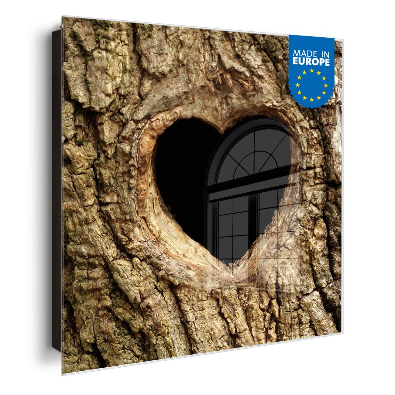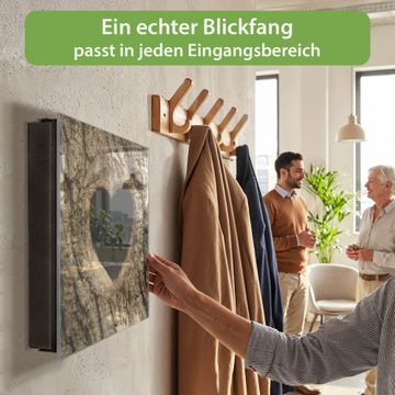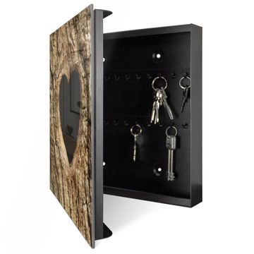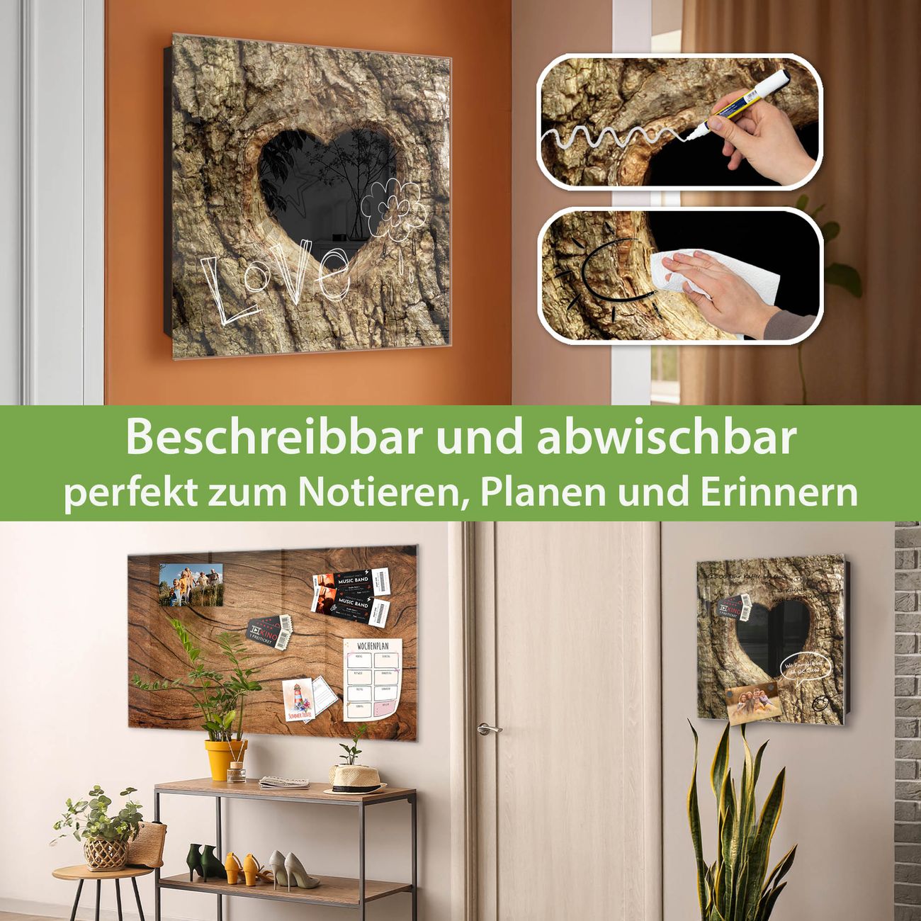 Bringe Ordnung und Eleganz in deinen Eingangsbereich mit dem banjado Schlüsselkasten Motiv Motiv Baumherz. Die moderne Schlüsselbox kombiniert funktionales Design mit hochwertiger Verarbeitung und wird so zu einem echten Hingucker in Flur, Büro oder Ferienwohnung. ✅ Stilvolle Schlüsselaufbewahrung mit Glasfront im Motiv Motiv Baumherz Der Design-Schlüsselkasten Motiv Motiv Baumherz bietet Platz für bis zu 50 Schlüssel, die auf 5 stabilen Reihen mit je 10 Haken übersichtlich verstaut werden. Mit seinen kompakten Maßen von 30 x 30 x 5 cm passt die Schlüsselbox perfekt auch in kleinere Räume. Der schwarz lackierte Stahlkorpus mit rechts angeschlagenem Türscharnier harmoniert mit der Glasfront und fügt sich nahtlos in jedes Wohnambiente ein. Ob als Schlüsselorganizer für Zuhause oder als praktische Lösung für Büros, Praxen und Gewerbe, der banjado Schlüsselkasten sorgt für Ordnung und Übersicht. Dank der magnetischen, mit Kreidestiften beschreibbaren Glasfront kannst du Notizen anheften oder Termine direkt auf der Oberfläche festhalten. Die Schlüsselbox Motiv Motiv Baumherz zur Wandmontage wird inklusive Befestigungsmaterial geliefert und ist schnell angebracht. So hast du deine Schlüssel jederzeit griffbereit und zugleich stilvoll verstaut. Mit diesem banjado Schlüsselkasten Motiv Motiv Baumherz kombinierst du praktische Aufbewahrung mit stilvollem Wohndesign. Ob privat oder geschäftlich, die Schlüsselbox sorgt für mehr Ordnung, Übersicht und ein wohnliches Ambiente.Vorteile im Überblick