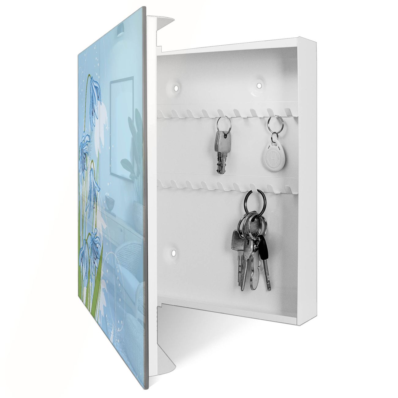 Schlüsselkasten Glas Motiv Bergblaulilie