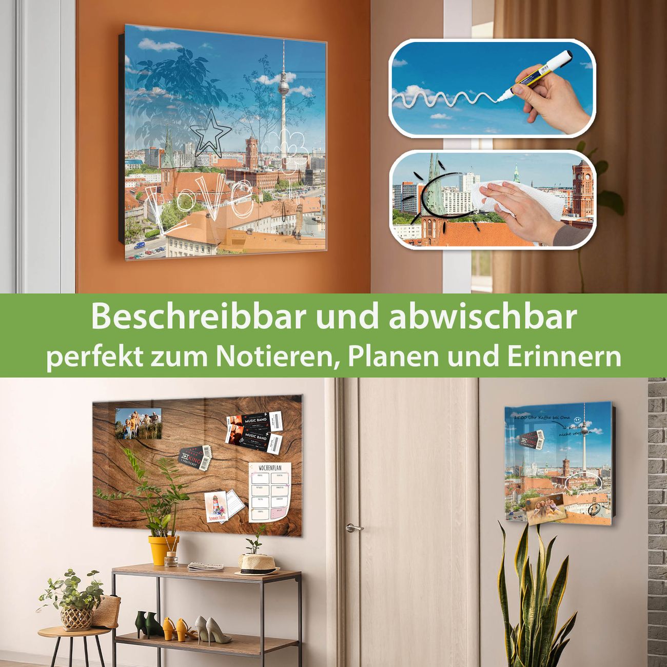 ✅ Magnetisch und mit Kreidestift beschreibbar, gehärtetes Glas, rechts angeschlagene TürOrdnung und Design in einem