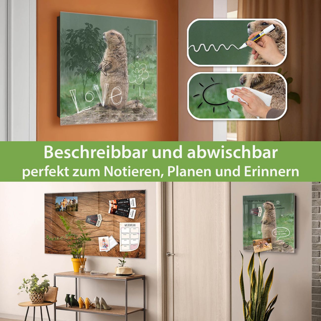 ✅ Magnetisch und mit Kreidestift beschreibbar, gehärtetes Glas, links angeschlagene TürOrdnung und Design in einem