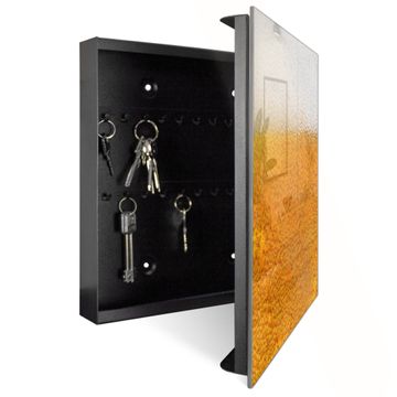 Bringe Ordnung und Eleganz in deinen Eingangsbereich mit dem banjado Schlüsselkasten Motiv Motiv Bier. Die moderne Schlüsselbox kombiniert funktionales Design mit hochwertiger Verarbeitung und wird so zu einem echten Hingucker in Flur, Büro oder Ferienwohnung. ✅ Stilvolle Schlüsselaufbewahrung mit Glasfront im Motiv Motiv Bier Der Design-Schlüsselkasten Motiv Motiv Bier bietet Platz für bis zu 50 Schlüssel, die auf 5 stabilen Reihen mit je 10 Haken übersichtlich verstaut werden. Mit seinen kompakten Maßen von 30 x 30 x 5 cm passt die Schlüsselbox perfekt auch in kleinere Räume. Der schwarz lackierte Stahlkorpus mit rechts angeschlagenem Türscharnier harmoniert mit der Glasfront und fügt sich nahtlos in jedes Wohnambiente ein. Ob als Schlüsselorganizer für Zuhause oder als praktische Lösung für Büros, Praxen und Gewerbe, der banjado Schlüsselkasten sorgt für Ordnung und Übersicht. Dank der magnetischen, mit Kreidestiften beschreibbaren Glasfront kannst du Notizen anheften oder Termine direkt auf der Oberfläche festhalten. Die Schlüsselbox Motiv Motiv Bier zur Wandmontage wird inklusive Befestigungsmaterial geliefert und ist schnell angebracht. So hast du deine Schlüssel jederzeit griffbereit und zugleich stilvoll verstaut. Mit diesem banjado Schlüsselkasten Motiv Motiv Bier kombinierst du praktische Aufbewahrung mit stilvollem Wohndesign. Ob privat oder geschäftlich, die Schlüsselbox sorgt für mehr Ordnung, Übersicht und ein wohnliches Ambiente.Vorteile im Überblick