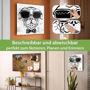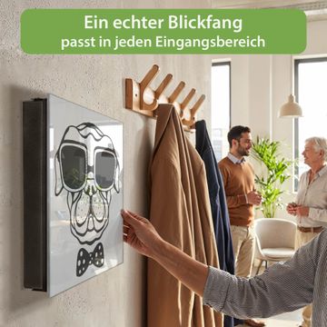 Bringe Ordnung und Eleganz in deinen Eingangsbereich mit dem banjado Schlüsselkasten Motiv Motiv Big Boss. Die moderne Schlüsselbox kombiniert funktionales Design mit hochwertiger Verarbeitung und wird so zu einem echten Hingucker in Flur, Büro oder Ferienwohnung. ✅ Stilvolle Schlüsselaufbewahrung mit Glasfront im Motiv Motiv Big Boss Der Design-Schlüsselkasten Motiv Motiv Big Boss bietet Platz für bis zu 50 Schlüssel, die auf 5 stabilen Reihen mit je 10 Haken übersichtlich verstaut werden. Mit seinen kompakten Maßen von 30 x 30 x 5 cm passt die Schlüsselbox perfekt auch in kleinere Räume. Der schwarz lackierte Stahlkorpus mit rechts angeschlagenem Türscharnier harmoniert mit der Glasfront und fügt sich nahtlos in jedes Wohnambiente ein. Ob als Schlüsselorganizer für Zuhause oder als praktische Lösung für Büros, Praxen und Gewerbe, der banjado Schlüsselkasten sorgt für Ordnung und Übersicht. Dank der magnetischen, mit Kreidestiften beschreibbaren Glasfront kannst du Notizen anheften oder Termine direkt auf der Oberfläche festhalten. Die Schlüsselbox Motiv Motiv Big Boss zur Wandmontage wird inklusive Befestigungsmaterial geliefert und ist schnell angebracht. So hast du deine Schlüssel jederzeit griffbereit und zugleich stilvoll verstaut. Mit diesem banjado Schlüsselkasten Motiv Motiv Big Boss kombinierst du praktische Aufbewahrung mit stilvollem Wohndesign. Ob privat oder geschäftlich, die Schlüsselbox sorgt für mehr Ordnung, Übersicht und ein wohnliches Ambiente.Vorteile im Überblick