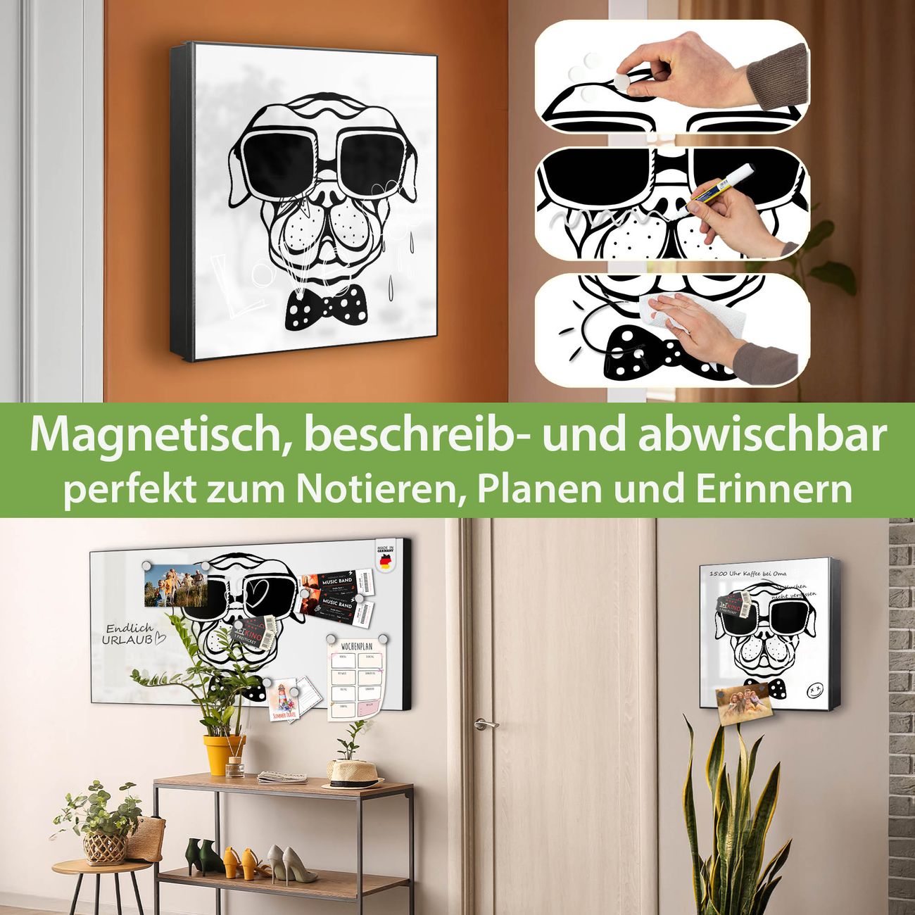 ✅ Magnetisch und mit Kreidestift beschreibbar, links angeschlagene TürOrdnung und Design in einem