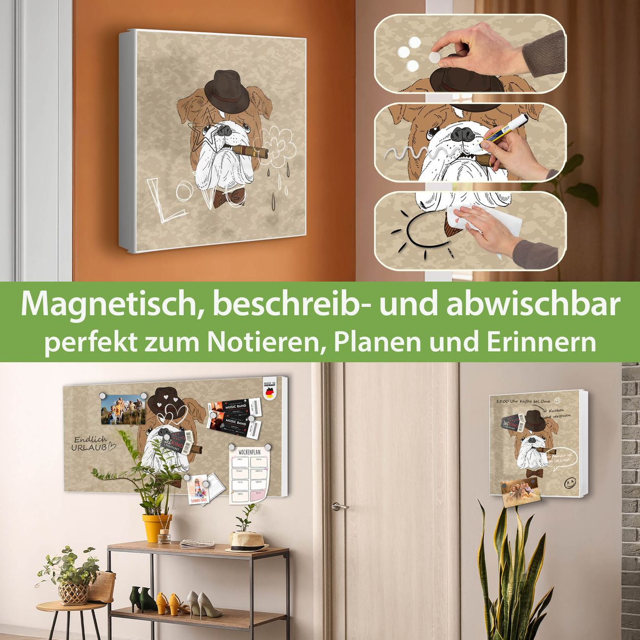 ✅ Magnetisch und mit Kreidestift beschreibbar, rechts angeschlagene TürOrdnung und Design in einem