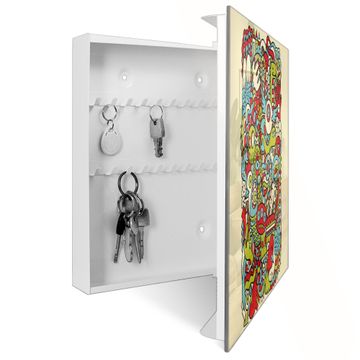Bringe Ordnung und Eleganz in deinen Eingangsbereich mit dem banjado Schlüsselkasten Motiv Motiv Birds Worms Freaks. Die moderne Schlüsselbox kombiniert funktionales Design mit hochwertiger Verarbeitung und wird so zu einem echten Hingucker in Flur, Büro oder Ferienwohnung. ✅ Stilvolle Schlüsselaufbewahrung mit Glasfront im Motiv Motiv Birds Worms Freaks Der Design-Schlüsselkasten Motiv Motiv Birds Worms Freaks bietet Platz für bis zu 50 Schlüssel, die auf 5 stabilen Reihen mit je 10 Haken übersichtlich verstaut werden. Mit seinen kompakten Maßen von 30 x 30 x 5 cm passt die Schlüsselbox perfekt auch in kleinere Räume. Der weiß lackierte Stahlkorpus mit rechts angeschlagenem Türscharnier harmoniert mit der Glasfront und fügt sich nahtlos in jedes Wohnambiente ein. Ob als Schlüsselorganizer für Zuhause oder als praktische Lösung für Büros, Praxen und Gewerbe, der banjado Schlüsselkasten sorgt für Ordnung und Übersicht. Dank der magnetischen, mit Kreidestiften beschreibbaren Glasfront kannst du Notizen anheften oder Termine direkt auf der Oberfläche festhalten. Die Schlüsselbox Motiv Motiv Birds Worms Freaks zur Wandmontage wird inklusive Befestigungsmaterial geliefert und ist schnell angebracht. So hast du deine Schlüssel jederzeit griffbereit und zugleich stilvoll verstaut. Mit diesem banjado Schlüsselkasten Motiv Motiv Birds Worms Freaks kombinierst du praktische Aufbewahrung mit stilvollem Wohndesign. Ob privat oder geschäftlich, die Schlüsselbox sorgt für mehr Ordnung, Übersicht und ein wohnliches Ambiente.Vorteile im Überblick