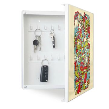 Bringe Ordnung und Eleganz in deinen Eingangsbereich mit dem banjado Schlüsselkasten Motiv Motiv Birds Worms Freaks. Die moderne Schlüsselbox kombiniert funktionales Design mit hochwertiger Verarbeitung und wird so zu einem echten Hingucker in Flur, Büro oder Ferienwohnung. ✅ Stilvolle Schlüsselaufbewahrung mit Motiv Motiv Birds Worms Freaks Der Design-Schlüsselkasten Motiv Motiv Birds Worms Freaks bietet Platz für bis zu 32 Schlüssel, die auf 4 stabilen Reihen mit je 8 Haken übersichtlich verstaut werden. Mit seinen kompakten Maßen von 30 x 30 x 5 cm passt die Schlüsselbox perfekt auch in kleinere Räume. Der weiß lackierte Stahlkorpus mit rechts angeschlagenem Türscharnier harmoniert mit gedruckten Folie auf der Front und fügt sich nahtlos in jedes Wohnambiente ein. Ob als Schlüsselorganizer für Zuhause oder als praktische Lösung für Büros, Praxen und Gewerbe, der banjado Schlüsselkasten sorgt für Ordnung und Übersicht. Dank der magnetischen, mit Kreidestiften beschreibbaren Folie auf der Front kannst du Notizen anheften oder Termine direkt auf der Oberfläche festhalten. Die Schlüsselbox Motiv Motiv Birds Worms Freaks zur Wandmontage wird inklusive Befestigungsmaterial geliefert und ist schnell angebracht. So hast du deine Schlüssel jederzeit griffbereit und zugleich stilvoll verstaut. Mit diesem banjado Schlüsselkasten Motiv Motiv Birds Worms Freaks kombinierst du praktische Aufbewahrung mit stilvollem Wohndesign. Ob privat oder geschäftlich, die Schlüsselbox sorgt für mehr Ordnung, Übersicht und ein wohnliches Ambiente.Vorteile im Überblick