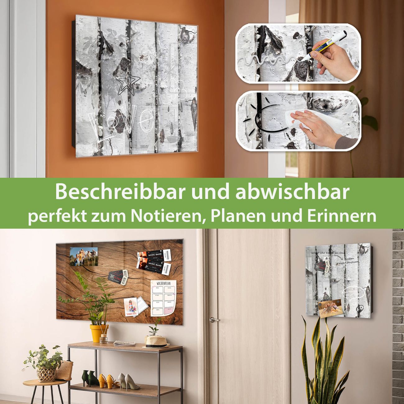 ✅ Magnetisch und mit Kreidestift beschreibbar, gehärtetes Glas, rechts angeschlagene TürOrdnung und Design in einem