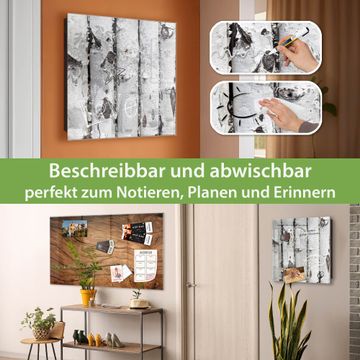 Bringe Ordnung und Eleganz in deinen Eingangsbereich mit dem banjado Schlüsselkasten Motiv Motiv Birkenrinde. Die moderne Schlüsselbox kombiniert funktionales Design mit hochwertiger Verarbeitung und wird so zu einem echten Hingucker in Flur, Büro oder Ferienwohnung. ✅ Stilvolle Schlüsselaufbewahrung mit Glasfront im Motiv Motiv Birkenrinde Der Design-Schlüsselkasten Motiv Motiv Birkenrinde bietet Platz für bis zu 50 Schlüssel, die auf 5 stabilen Reihen mit je 10 Haken übersichtlich verstaut werden. Mit seinen kompakten Maßen von 30 x 30 x 5 cm passt die Schlüsselbox perfekt auch in kleinere Räume. Der schwarz lackierte Stahlkorpus mit rechts angeschlagenem Türscharnier harmoniert mit der Glasfront und fügt sich nahtlos in jedes Wohnambiente ein. Ob als Schlüsselorganizer für Zuhause oder als praktische Lösung für Büros, Praxen und Gewerbe, der banjado Schlüsselkasten sorgt für Ordnung und Übersicht. Dank der magnetischen, mit Kreidestiften beschreibbaren Glasfront kannst du Notizen anheften oder Termine direkt auf der Oberfläche festhalten. Die Schlüsselbox Motiv Motiv Birkenrinde zur Wandmontage wird inklusive Befestigungsmaterial geliefert und ist schnell angebracht. So hast du deine Schlüssel jederzeit griffbereit und zugleich stilvoll verstaut. Mit diesem banjado Schlüsselkasten Motiv Motiv Birkenrinde kombinierst du praktische Aufbewahrung mit stilvollem Wohndesign. Ob privat oder geschäftlich, die Schlüsselbox sorgt für mehr Ordnung, Übersicht und ein wohnliches Ambiente.Vorteile im Überblick
