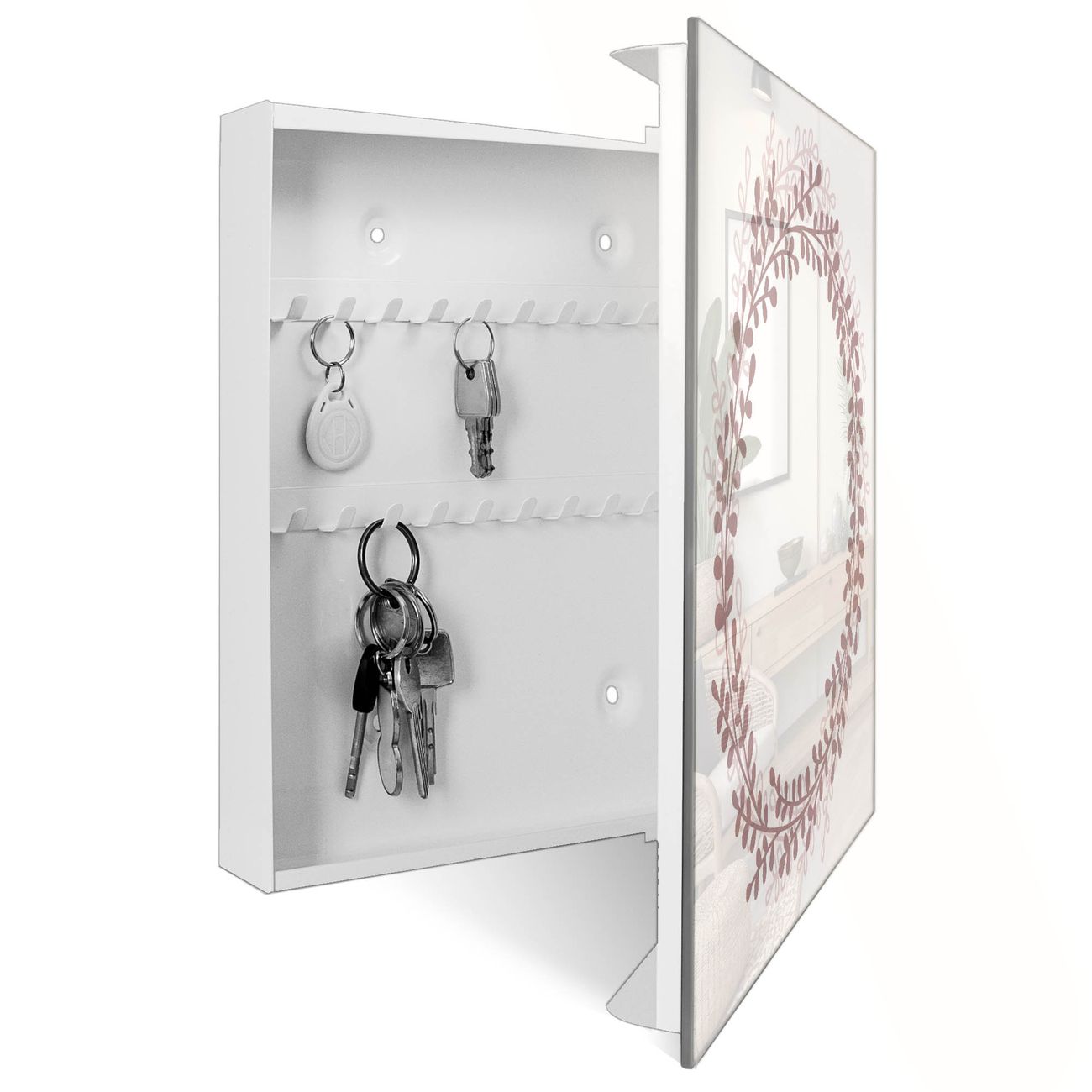 Schlüsselkasten Glas Motiv Blätterkranz
