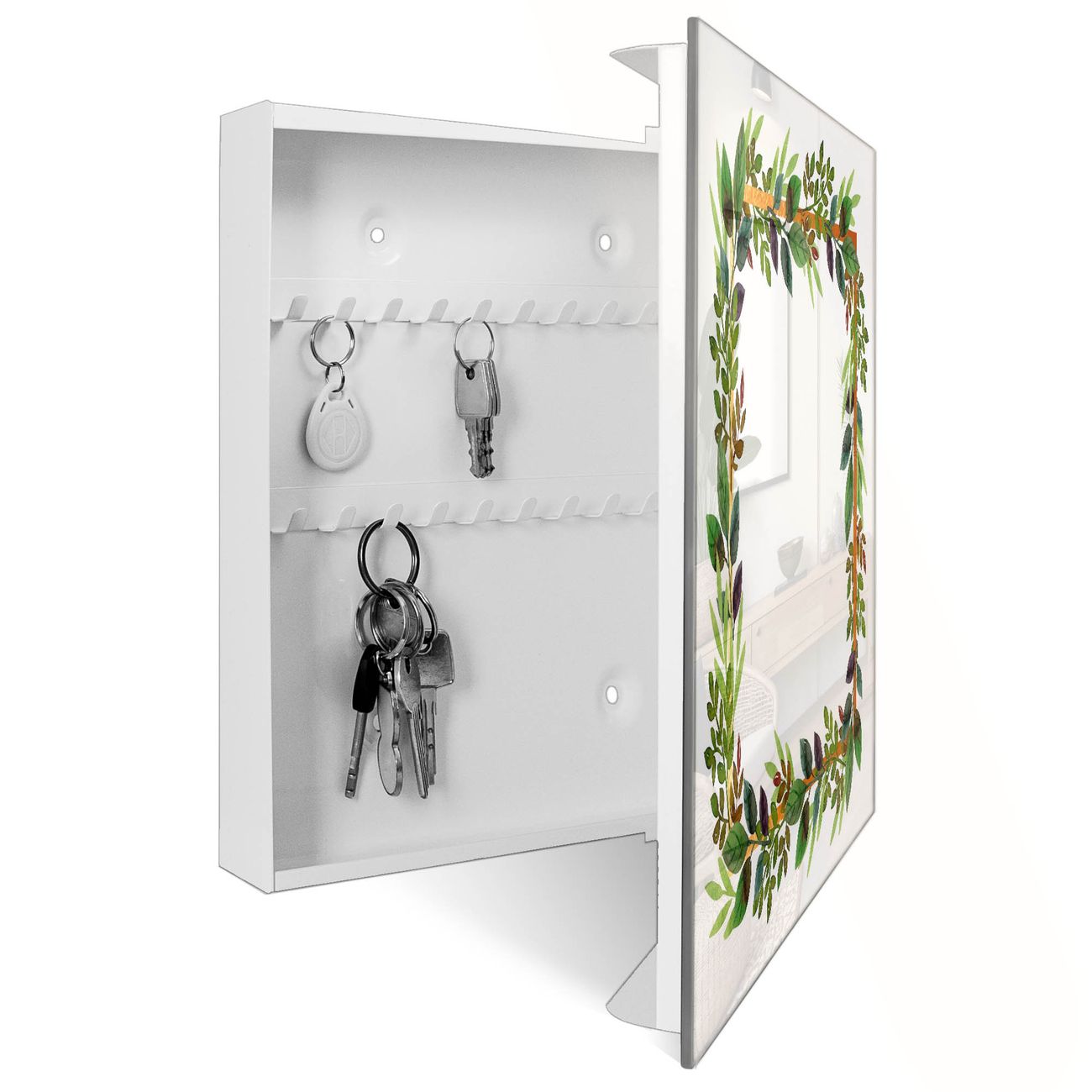 Schlüsselkasten Glas Motiv Blätterrahmen 2