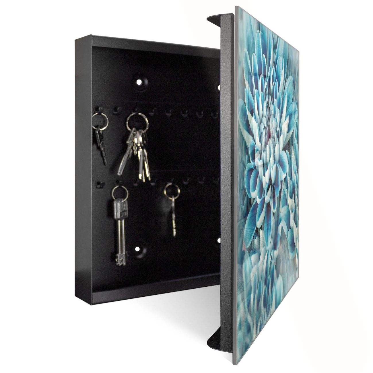 Schlüsselkasten Glas Motiv Blaue Blüten