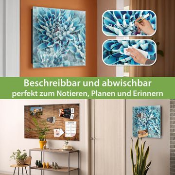Bringe Ordnung und Eleganz in deinen Eingangsbereich mit dem banjado Schlüsselkasten Motiv Motiv Blaue Blüten. Die moderne Schlüsselbox kombiniert funktionales Design mit hochwertiger Verarbeitung und wird so zu einem echten Hingucker in Flur, Büro oder Ferienwohnung. ✅ Stilvolle Schlüsselaufbewahrung mit Glasfront im Motiv Motiv Blaue Blüten Der Design-Schlüsselkasten Motiv Motiv Blaue Blüten bietet Platz für bis zu 50 Schlüssel, die auf 5 stabilen Reihen mit je 10 Haken übersichtlich verstaut werden. Mit seinen kompakten Maßen von 30 x 30 x 5 cm passt die Schlüsselbox perfekt auch in kleinere Räume. Der schwarz lackierte Stahlkorpus mit rechts angeschlagenem Türscharnier harmoniert mit der Glasfront und fügt sich nahtlos in jedes Wohnambiente ein. Ob als Schlüsselorganizer für Zuhause oder als praktische Lösung für Büros, Praxen und Gewerbe, der banjado Schlüsselkasten sorgt für Ordnung und Übersicht. Dank der magnetischen, mit Kreidestiften beschreibbaren Glasfront kannst du Notizen anheften oder Termine direkt auf der Oberfläche festhalten. Die Schlüsselbox Motiv Motiv Blaue Blüten zur Wandmontage wird inklusive Befestigungsmaterial geliefert und ist schnell angebracht. So hast du deine Schlüssel jederzeit griffbereit und zugleich stilvoll verstaut. Mit diesem banjado Schlüsselkasten Motiv Motiv Blaue Blüten kombinierst du praktische Aufbewahrung mit stilvollem Wohndesign. Ob privat oder geschäftlich, die Schlüsselbox sorgt für mehr Ordnung, Übersicht und ein wohnliches Ambiente.Vorteile im Überblick
