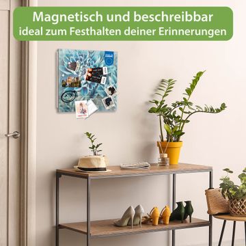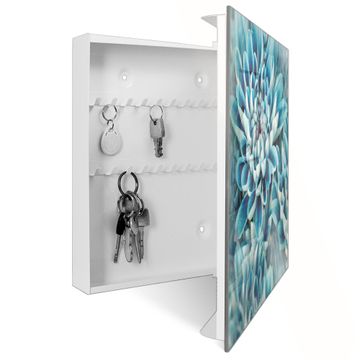 Bringe Ordnung und Eleganz in deinen Eingangsbereich mit dem banjado Schlüsselkasten Motiv Motiv Blaue Blüten. Die moderne Schlüsselbox kombiniert funktionales Design mit hochwertiger Verarbeitung und wird so zu einem echten Hingucker in Flur, Büro oder Ferienwohnung. ✅ Stilvolle Schlüsselaufbewahrung mit Glasfront im Motiv Motiv Blaue Blüten Der Design-Schlüsselkasten Motiv Motiv Blaue Blüten bietet Platz für bis zu 50 Schlüssel, die auf 5 stabilen Reihen mit je 10 Haken übersichtlich verstaut werden. Mit seinen kompakten Maßen von 30 x 30 x 5 cm passt die Schlüsselbox perfekt auch in kleinere Räume. Der weiß lackierte Stahlkorpus mit rechts angeschlagenem Türscharnier harmoniert mit der Glasfront und fügt sich nahtlos in jedes Wohnambiente ein. Ob als Schlüsselorganizer für Zuhause oder als praktische Lösung für Büros, Praxen und Gewerbe, der banjado Schlüsselkasten sorgt für Ordnung und Übersicht. Dank der magnetischen, mit Kreidestiften beschreibbaren Glasfront kannst du Notizen anheften oder Termine direkt auf der Oberfläche festhalten. Die Schlüsselbox Motiv Motiv Blaue Blüten zur Wandmontage wird inklusive Befestigungsmaterial geliefert und ist schnell angebracht. So hast du deine Schlüssel jederzeit griffbereit und zugleich stilvoll verstaut. Mit diesem banjado Schlüsselkasten Motiv Motiv Blaue Blüten kombinierst du praktische Aufbewahrung mit stilvollem Wohndesign. Ob privat oder geschäftlich, die Schlüsselbox sorgt für mehr Ordnung, Übersicht und ein wohnliches Ambiente.Vorteile im Überblick