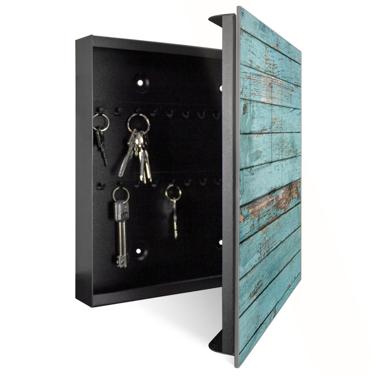 Schlüsselkasten Glas Motiv Blaue Holzlatten
