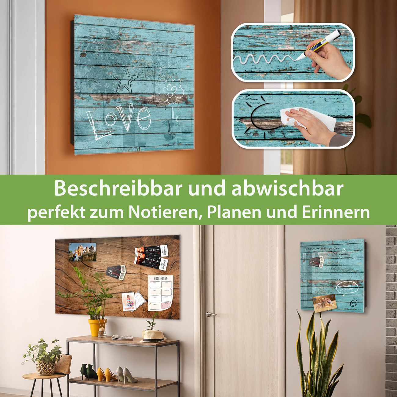 ✅ Magnetisch und mit Kreidestift beschreibbar, gehärtetes Glas, links angeschlagene TürOrdnung und Design in einem