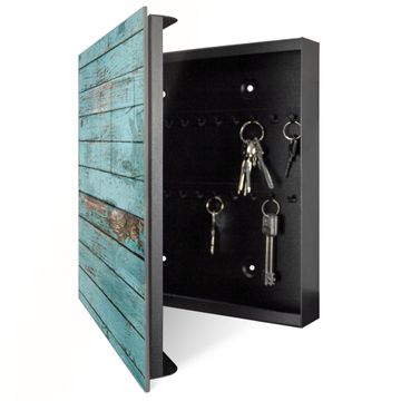 Schlüsselkasten Glas Motiv Blaue Holzlatten