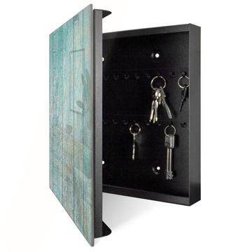 Bringe Ordnung und Eleganz in deinen Eingangsbereich mit dem banjado Schlüsselkasten Motiv Motiv Blaue Planken. Die moderne Schlüsselbox kombiniert funktionales Design mit hochwertiger Verarbeitung und wird so zu einem echten Hingucker in Flur, Büro oder Ferienwohnung. ✅ Stilvolle Schlüsselaufbewahrung mit Glasfront im Motiv Motiv Blaue Planken Der Design-Schlüsselkasten Motiv Motiv Blaue Planken bietet Platz für bis zu 50 Schlüssel, die auf 5 stabilen Reihen mit je 10 Haken übersichtlich verstaut werden. Mit seinen kompakten Maßen von 30 x 30 x 5 cm passt die Schlüsselbox perfekt auch in kleinere Räume. Der schwarz lackierte Stahlkorpus mit rechts angeschlagenem Türscharnier harmoniert mit der Glasfront und fügt sich nahtlos in jedes Wohnambiente ein. Ob als Schlüsselorganizer für Zuhause oder als praktische Lösung für Büros, Praxen und Gewerbe, der banjado Schlüsselkasten sorgt für Ordnung und Übersicht. Dank der magnetischen, mit Kreidestiften beschreibbaren Glasfront kannst du Notizen anheften oder Termine direkt auf der Oberfläche festhalten. Die Schlüsselbox Motiv Motiv Blaue Planken zur Wandmontage wird inklusive Befestigungsmaterial geliefert und ist schnell angebracht. So hast du deine Schlüssel jederzeit griffbereit und zugleich stilvoll verstaut. Mit diesem banjado Schlüsselkasten Motiv Motiv Blaue Planken kombinierst du praktische Aufbewahrung mit stilvollem Wohndesign. Ob privat oder geschäftlich, die Schlüsselbox sorgt für mehr Ordnung, Übersicht und ein wohnliches Ambiente.Vorteile im Überblick