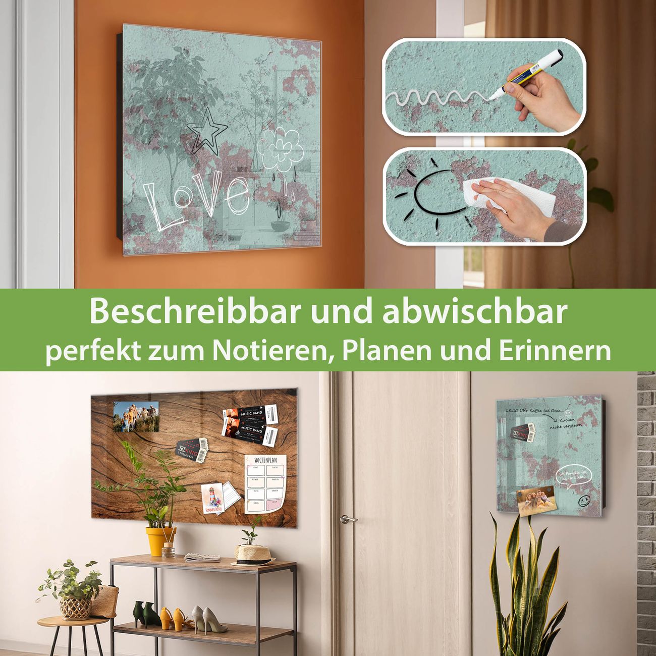 ✅ Magnetisch und mit Kreidestift beschreibbar, gehärtetes Glas, rechts angeschlagene TürOrdnung und Design in einem