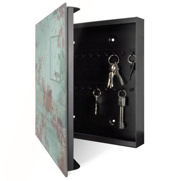 Bringe Ordnung und Eleganz in deinen Eingangsbereich mit dem banjado Schlüsselkasten Motiv Motiv Blaue Struktur. Die moderne Schlüsselbox kombiniert funktionales Design mit hochwertiger Verarbeitung und wird so zu einem echten Hingucker in Flur, Büro oder Ferienwohnung. ✅ Stilvolle Schlüsselaufbewahrung mit Glasfront im Motiv Motiv Blaue Struktur Der Design-Schlüsselkasten Motiv Motiv Blaue Struktur bietet Platz für bis zu 50 Schlüssel, die auf 5 stabilen Reihen mit je 10 Haken übersichtlich verstaut werden. Mit seinen kompakten Maßen von 30 x 30 x 5 cm passt die Schlüsselbox perfekt auch in kleinere Räume. Der schwarz lackierte Stahlkorpus mit rechts angeschlagenem Türscharnier harmoniert mit der Glasfront und fügt sich nahtlos in jedes Wohnambiente ein. Ob als Schlüsselorganizer für Zuhause oder als praktische Lösung für Büros, Praxen und Gewerbe, der banjado Schlüsselkasten sorgt für Ordnung und Übersicht. Dank der magnetischen, mit Kreidestiften beschreibbaren Glasfront kannst du Notizen anheften oder Termine direkt auf der Oberfläche festhalten. Die Schlüsselbox Motiv Motiv Blaue Struktur zur Wandmontage wird inklusive Befestigungsmaterial geliefert und ist schnell angebracht. So hast du deine Schlüssel jederzeit griffbereit und zugleich stilvoll verstaut. Mit diesem banjado Schlüsselkasten Motiv Motiv Blaue Struktur kombinierst du praktische Aufbewahrung mit stilvollem Wohndesign. Ob privat oder geschäftlich, die Schlüsselbox sorgt für mehr Ordnung, Übersicht und ein wohnliches Ambiente.Vorteile im Überblick