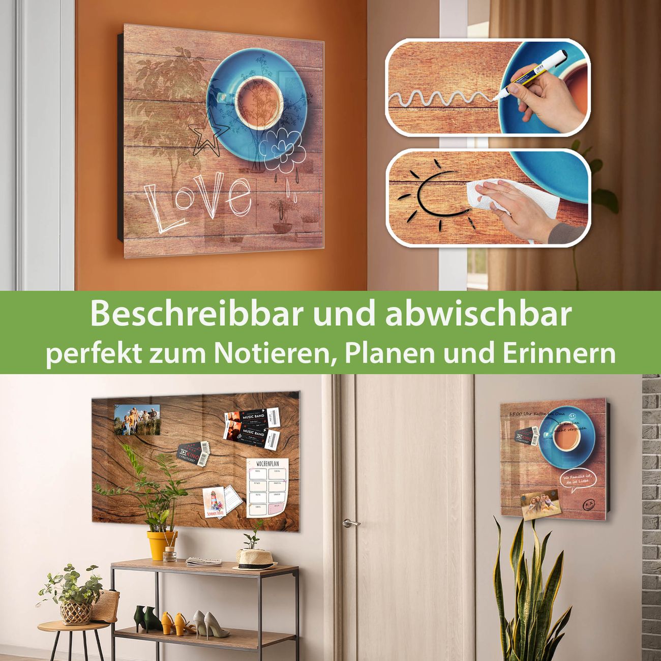 ✅ Magnetisch und mit Kreidestift beschreibbar, gehärtetes Glas, rechts angeschlagene TürOrdnung und Design in einem