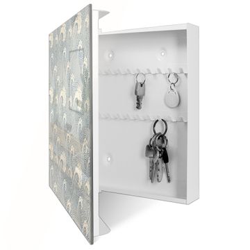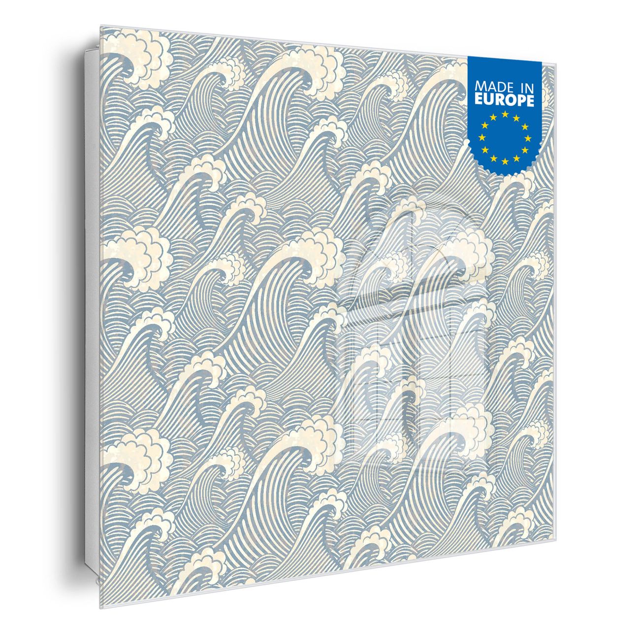 Bringe Ordnung und Eleganz in deinen Eingangsbereich mit dem banjado Schlüsselkasten Motiv Motiv Blaue Wellen . Die moderne Schlüsselbox kombiniert funktionales Design mit hochwertiger Verarbeitung und wird so zu einem echten Hingucker in Flur, Büro oder Ferienwohnung. ✅ Stilvolle Schlüsselaufbewahrung mit Glasfront im Motiv Motiv Blaue Wellen Der Design-Schlüsselkasten Motiv Motiv Blaue Wellen bietet Platz für bis zu 50 Schlüssel, die auf 5 stabilen Reihen mit je 10 Haken übersichtlich verstaut werden. Mit seinen kompakten Maßen von 30 x 30 x 5 cm passt die Schlüsselbox perfekt auch in kleinere Räume. Der weiß lackierte Stahlkorpus mit rechts angeschlagenem Türscharnier harmoniert mit der Glasfront und fügt sich nahtlos in jedes Wohnambiente ein. Ob als Schlüsselorganizer für Zuhause oder als praktische Lösung für Büros, Praxen und Gewerbe, der banjado Schlüsselkasten sorgt für Ordnung und Übersicht. Dank der magnetischen, mit Kreidestiften beschreibbaren Glasfront kannst du Notizen anheften oder Termine direkt auf der Oberfläche festhalten. Die Schlüsselbox Motiv Motiv Blaue Wellen zur Wandmontage wird inklusive Befestigungsmaterial geliefert und ist schnell angebracht. So hast du deine Schlüssel jederzeit griffbereit und zugleich stilvoll verstaut. Mit diesem banjado Schlüsselkasten Motiv Motiv Blaue Wellen kombinierst du praktische Aufbewahrung mit stilvollem Wohndesign. Ob privat oder geschäftlich, die Schlüsselbox sorgt für mehr Ordnung, Übersicht und ein wohnliches Ambiente.Vorteile im Überblick