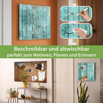 Bringe Ordnung und Eleganz in deinen Eingangsbereich mit dem banjado Schlüsselkasten Motiv Motiv Blaues Holz. Die moderne Schlüsselbox kombiniert funktionales Design mit hochwertiger Verarbeitung und wird so zu einem echten Hingucker in Flur, Büro oder Ferienwohnung. ✅ Stilvolle Schlüsselaufbewahrung mit Glasfront im Motiv Motiv Blaues Holz Der Design-Schlüsselkasten Motiv Motiv Blaues Holz bietet Platz für bis zu 50 Schlüssel, die auf 5 stabilen Reihen mit je 10 Haken übersichtlich verstaut werden. Mit seinen kompakten Maßen von 30 x 30 x 5 cm passt die Schlüsselbox perfekt auch in kleinere Räume. Der schwarz lackierte Stahlkorpus mit rechts angeschlagenem Türscharnier harmoniert mit der Glasfront und fügt sich nahtlos in jedes Wohnambiente ein. Ob als Schlüsselorganizer für Zuhause oder als praktische Lösung für Büros, Praxen und Gewerbe, der banjado Schlüsselkasten sorgt für Ordnung und Übersicht. Dank der magnetischen, mit Kreidestiften beschreibbaren Glasfront kannst du Notizen anheften oder Termine direkt auf der Oberfläche festhalten. Die Schlüsselbox Motiv Motiv Blaues Holz zur Wandmontage wird inklusive Befestigungsmaterial geliefert und ist schnell angebracht. So hast du deine Schlüssel jederzeit griffbereit und zugleich stilvoll verstaut. Mit diesem banjado Schlüsselkasten Motiv Motiv Blaues Holz kombinierst du praktische Aufbewahrung mit stilvollem Wohndesign. Ob privat oder geschäftlich, die Schlüsselbox sorgt für mehr Ordnung, Übersicht und ein wohnliches Ambiente.Vorteile im Überblick