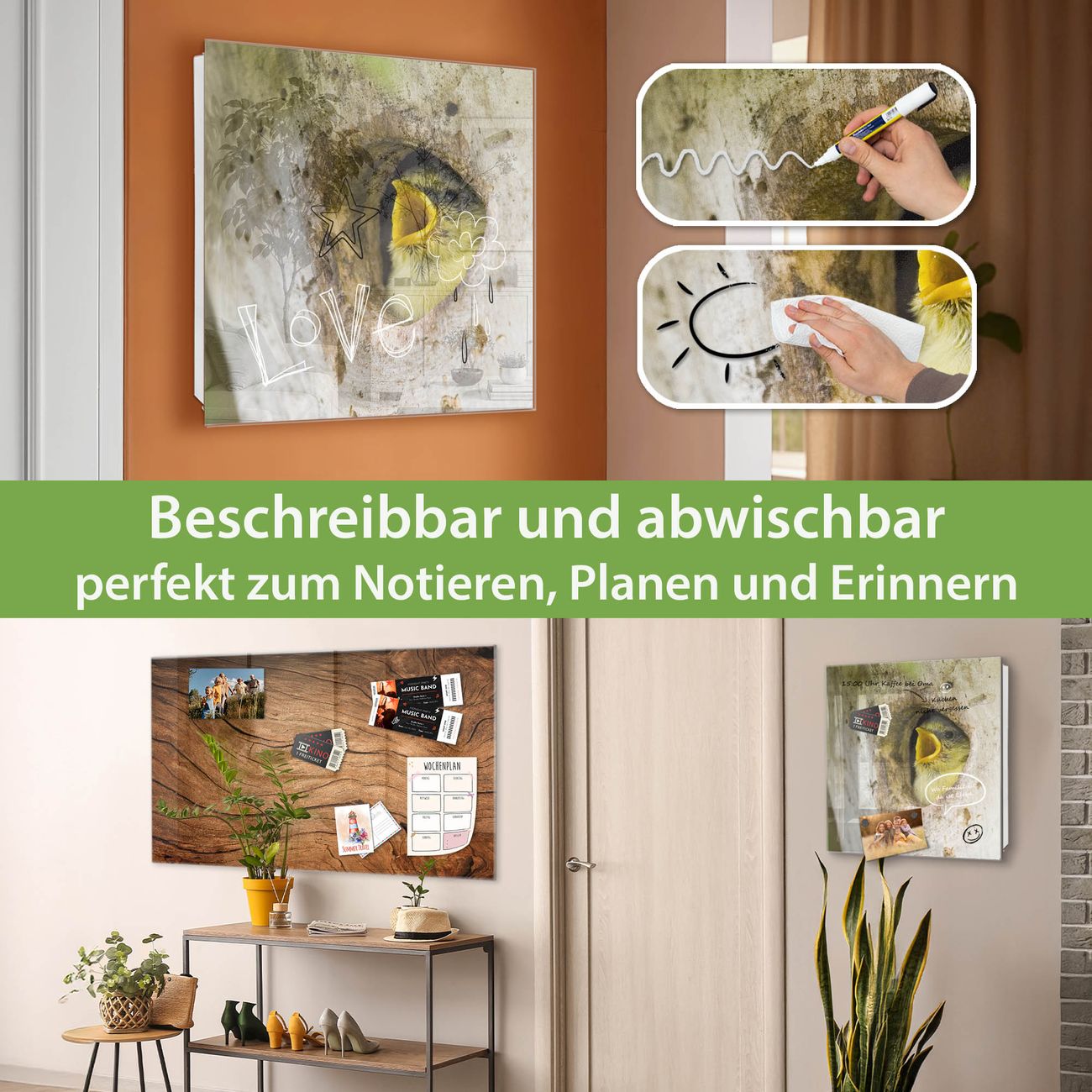 ✅ Magnetisch und mit Kreidestift beschreibbar, gehärtetes Glas, links angeschlagene TürOrdnung und Design in einem