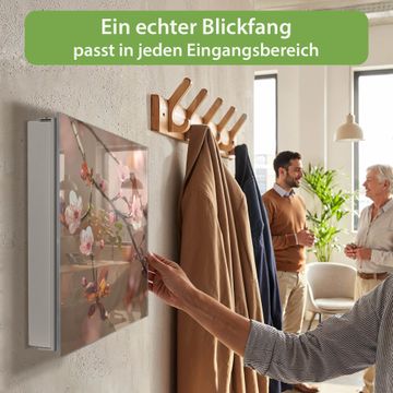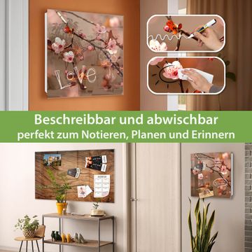 Bringe Ordnung und Eleganz in deinen Eingangsbereich mit dem banjado Schlüsselkasten Motiv Motiv Blühender Kirschzweig. Die moderne Schlüsselbox kombiniert funktionales Design mit hochwertiger Verarbeitung und wird so zu einem echten Hingucker in Flur, Büro oder Ferienwohnung. ✅ Stilvolle Schlüsselaufbewahrung mit Glasfront im Motiv Motiv Blühender Kirschzweig Der Design-Schlüsselkasten Motiv Motiv Blühender Kirschzweig bietet Platz für bis zu 50 Schlüssel, die auf 5 stabilen Reihen mit je 10 Haken übersichtlich verstaut werden. Mit seinen kompakten Maßen von 30 x 30 x 5 cm passt die Schlüsselbox perfekt auch in kleinere Räume. Der weiß lackierte Stahlkorpus mit rechts angeschlagenem Türscharnier harmoniert mit der Glasfront und fügt sich nahtlos in jedes Wohnambiente ein. Ob als Schlüsselorganizer für Zuhause oder als praktische Lösung für Büros, Praxen und Gewerbe, der banjado Schlüsselkasten sorgt für Ordnung und Übersicht. Dank der magnetischen, mit Kreidestiften beschreibbaren Glasfront kannst du Notizen anheften oder Termine direkt auf der Oberfläche festhalten. Die Schlüsselbox Motiv Motiv Blühender Kirschzweig zur Wandmontage wird inklusive Befestigungsmaterial geliefert und ist schnell angebracht. So hast du deine Schlüssel jederzeit griffbereit und zugleich stilvoll verstaut. Mit diesem banjado Schlüsselkasten Motiv Motiv Blühender Kirschzweig kombinierst du praktische Aufbewahrung mit stilvollem Wohndesign. Ob privat oder geschäftlich, die Schlüsselbox sorgt für mehr Ordnung, Übersicht und ein wohnliches Ambiente.Vorteile im Überblick
