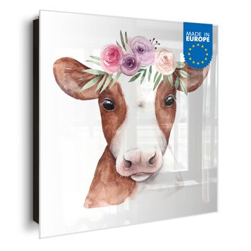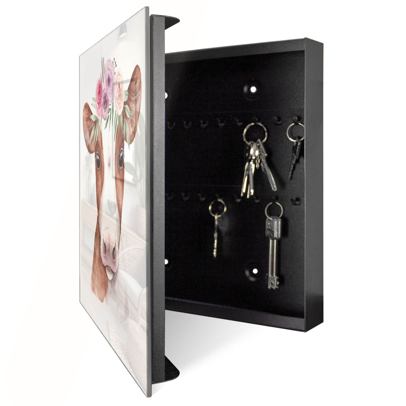 Schlüsselkasten Glas Motiv Kuh mit Blumenkrone