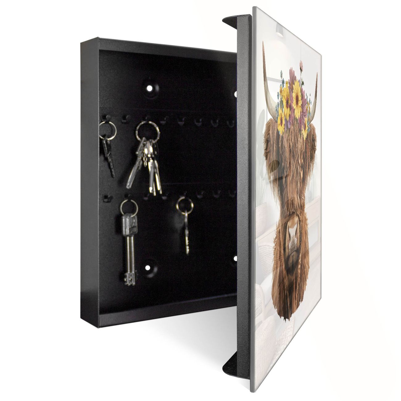 Schlüsselkasten Glas Motiv Blumige Highland-Kuh