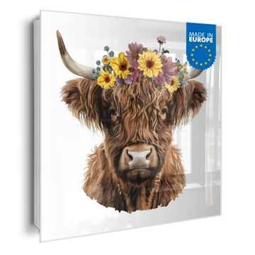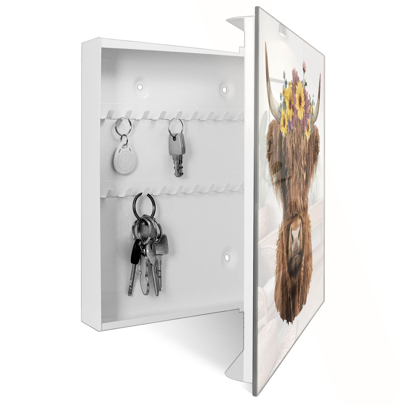 Schlüsselkasten Glas Motiv Blumige Highland-Kuh