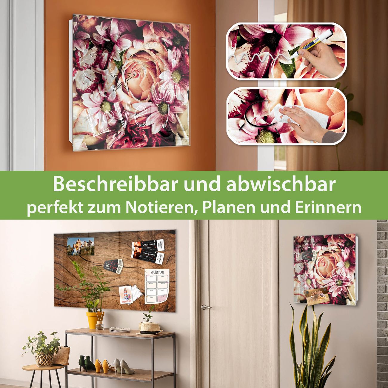 ✅ Magnetisch und mit Kreidestift beschreibbar, gehärtetes Glas, rechts angeschlagene TürOrdnung und Design in einem
