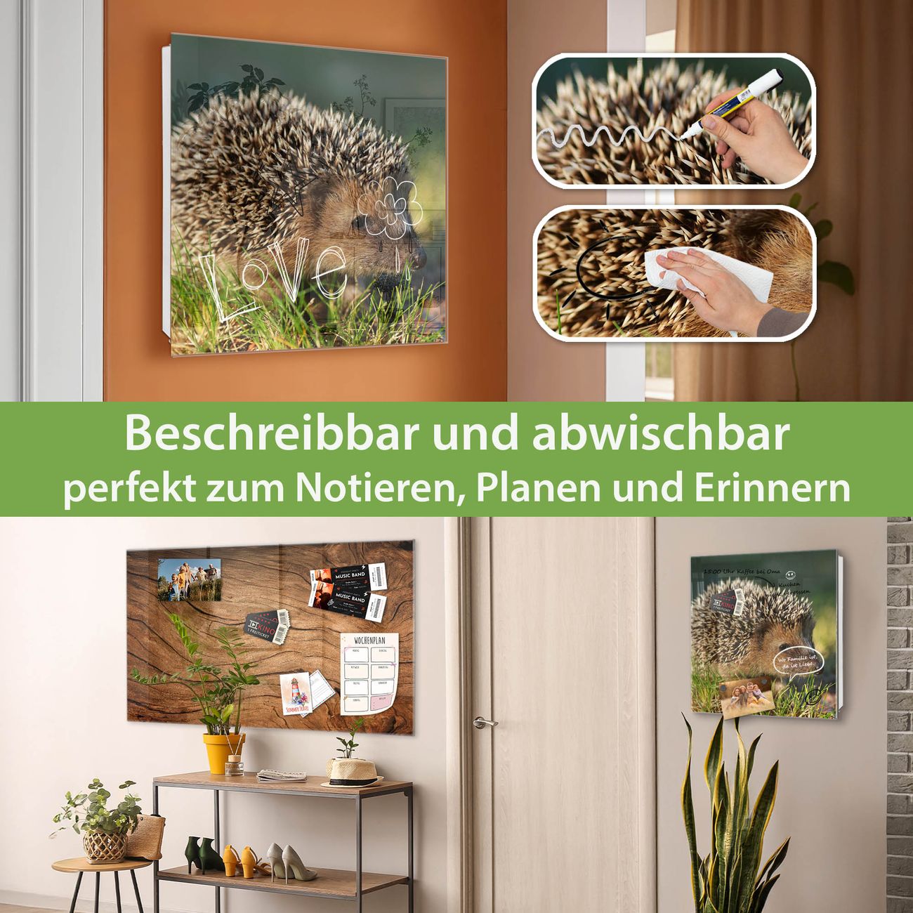 ✅ Magnetisch und mit Kreidestift beschreibbar, gehärtetes Glas, links angeschlagene TürOrdnung und Design in einem