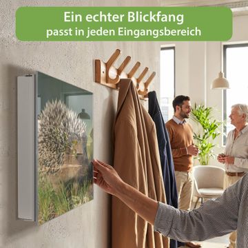 Bringe Ordnung und Eleganz in deinen Eingangsbereich mit dem banjado Schlüsselkasten Motiv Motiv Bruno. Die moderne Schlüsselbox kombiniert funktionales Design mit hochwertiger Verarbeitung und wird so zu einem echten Hingucker in Flur, Büro oder Ferienwohnung. ✅ Stilvolle Schlüsselaufbewahrung mit Glasfront im Motiv Motiv Bruno Der Design-Schlüsselkasten Motiv Motiv Bruno bietet Platz für bis zu 50 Schlüssel, die auf 5 stabilen Reihen mit je 10 Haken übersichtlich verstaut werden. Mit seinen kompakten Maßen von 30 x 30 x 5 cm passt die Schlüsselbox perfekt auch in kleinere Räume. Der weiß lackierte Stahlkorpus mit rechts angeschlagenem Türscharnier harmoniert mit der Glasfront und fügt sich nahtlos in jedes Wohnambiente ein. Ob als Schlüsselorganizer für Zuhause oder als praktische Lösung für Büros, Praxen und Gewerbe, der banjado Schlüsselkasten sorgt für Ordnung und Übersicht. Dank der magnetischen, mit Kreidestiften beschreibbaren Glasfront kannst du Notizen anheften oder Termine direkt auf der Oberfläche festhalten. Die Schlüsselbox Motiv Motiv Bruno zur Wandmontage wird inklusive Befestigungsmaterial geliefert und ist schnell angebracht. So hast du deine Schlüssel jederzeit griffbereit und zugleich stilvoll verstaut. Mit diesem banjado Schlüsselkasten Motiv Motiv Bruno kombinierst du praktische Aufbewahrung mit stilvollem Wohndesign. Ob privat oder geschäftlich, die Schlüsselbox sorgt für mehr Ordnung, Übersicht und ein wohnliches Ambiente.Vorteile im Überblick