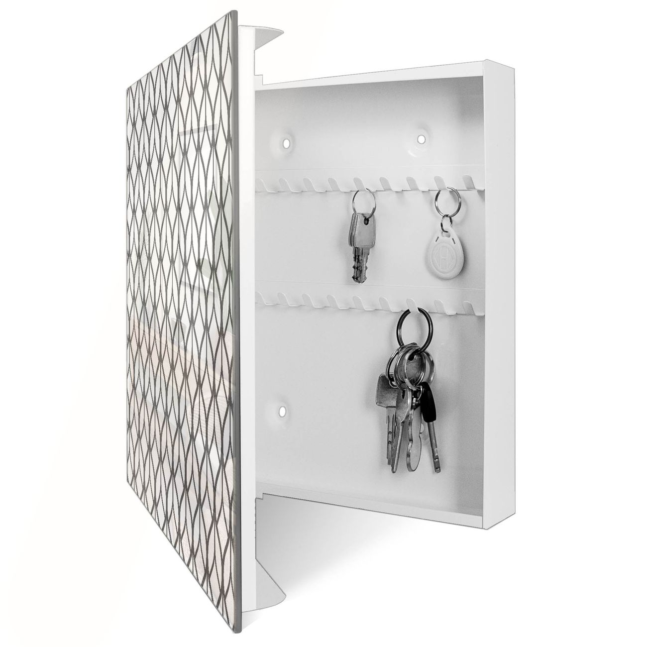 Bringe Ordnung und Eleganz in deinen Eingangsbereich mit dem banjado Schlüsselkasten Motiv Motiv Bucheckern. Die moderne Schlüsselbox kombiniert funktionales Design mit hochwertiger Verarbeitung und wird so zu einem echten Hingucker in Flur, Büro oder Ferienwohnung. ✅ Stilvolle Schlüsselaufbewahrung mit Glasfront im Motiv Motiv Bucheckern Der Design-Schlüsselkasten Motiv Motiv Bucheckern bietet Platz für bis zu 50 Schlüssel, die auf 5 stabilen Reihen mit je 10 Haken übersichtlich verstaut werden. Mit seinen kompakten Maßen von 30 x 30 x 5 cm passt die Schlüsselbox perfekt auch in kleinere Räume. Der weiß lackierte Stahlkorpus mit rechts angeschlagenem Türscharnier harmoniert mit der Glasfront und fügt sich nahtlos in jedes Wohnambiente ein. Ob als Schlüsselorganizer für Zuhause oder als praktische Lösung für Büros, Praxen und Gewerbe, der banjado Schlüsselkasten sorgt für Ordnung und Übersicht. Dank der magnetischen, mit Kreidestiften beschreibbaren Glasfront kannst du Notizen anheften oder Termine direkt auf der Oberfläche festhalten. Die Schlüsselbox Motiv Motiv Bucheckern zur Wandmontage wird inklusive Befestigungsmaterial geliefert und ist schnell angebracht. So hast du deine Schlüssel jederzeit griffbereit und zugleich stilvoll verstaut. Mit diesem banjado Schlüsselkasten Motiv Motiv Bucheckern kombinierst du praktische Aufbewahrung mit stilvollem Wohndesign. Ob privat oder geschäftlich, die Schlüsselbox sorgt für mehr Ordnung, Übersicht und ein wohnliches Ambiente.Vorteile im Überblick