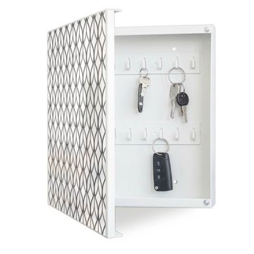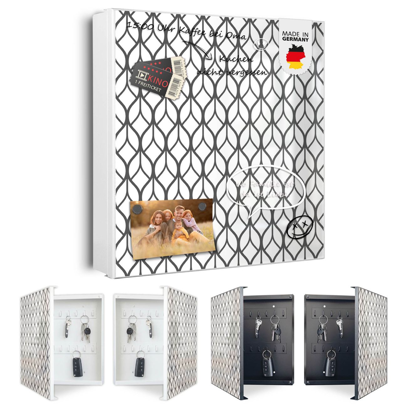 Bringe Ordnung und Eleganz in deinen Eingangsbereich mit dem banjado Schlüsselkasten Motiv Motiv Bucheckern. Die moderne Schlüsselbox kombiniert funktionales Design mit hochwertiger Verarbeitung und wird so zu einem echten Hingucker in Flur, Büro oder Ferienwohnung. ✅ Stilvolle Schlüsselaufbewahrung mit Motiv Motiv Bucheckern Der Design-Schlüsselkasten Motiv Motiv Bucheckern bietet Platz für bis zu 32 Schlüssel, die auf 4 stabilen Reihen mit je 8 Haken übersichtlich verstaut werden. Mit seinen kompakten Maßen von 30 x 30 x 5 cm passt die Schlüsselbox perfekt auch in kleinere Räume. Der weiß lackierte Stahlkorpus mit links angeschlagenem Türscharnier harmoniert mit gedruckten Folie auf der Front und fügt sich nahtlos in jedes Wohnambiente ein. Ob als Schlüsselorganizer für Zuhause oder als praktische Lösung für Büros, Praxen und Gewerbe, der banjado Schlüsselkasten sorgt für Ordnung und Übersicht. Dank der magnetischen, mit Kreidestiften beschreibbaren Folie auf der Front kannst du Notizen anheften oder Termine direkt auf der Oberfläche festhalten. Die Schlüsselbox Motiv Motiv Bucheckern zur Wandmontage wird inklusive Befestigungsmaterial geliefert und ist schnell angebracht. So hast du deine Schlüssel jederzeit griffbereit und zugleich stilvoll verstaut. Mit diesem banjado Schlüsselkasten Motiv Motiv Bucheckern kombinierst du praktische Aufbewahrung mit stilvollem Wohndesign. Ob privat oder geschäftlich, die Schlüsselbox sorgt für mehr Ordnung, Übersicht und ein wohnliches Ambiente.Vorteile im Überblick