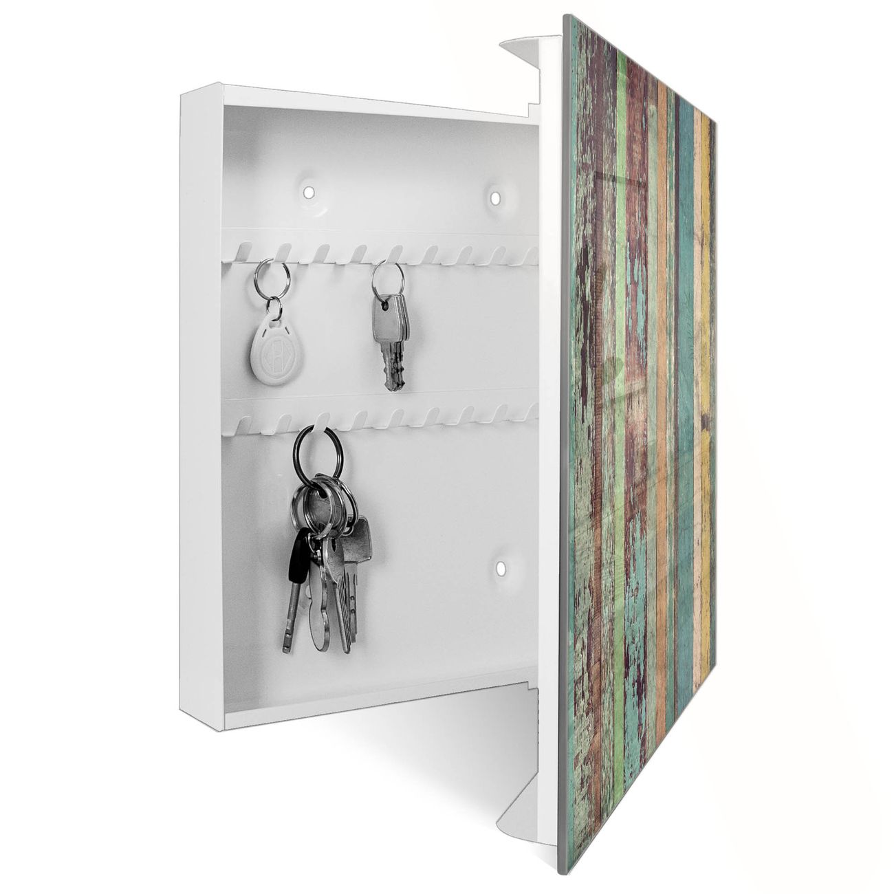 Schlüsselkasten Glas Motiv Bunte Bretterwand