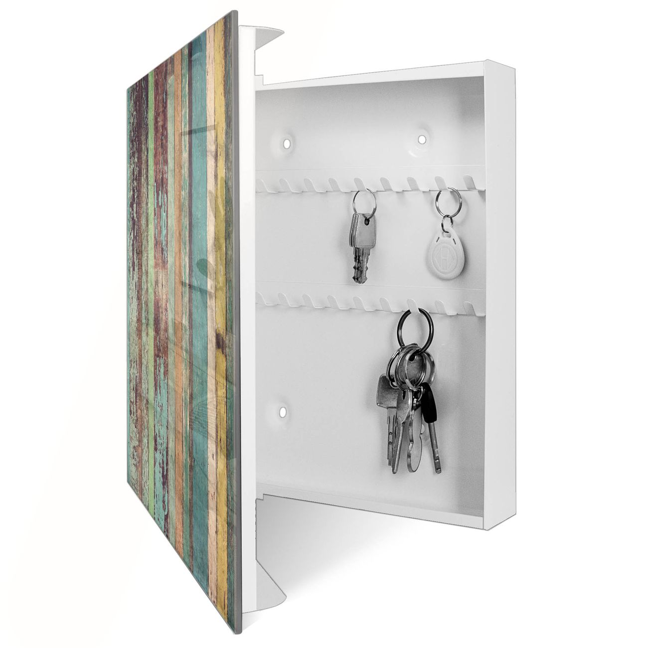 Schlüsselkasten Glas Motiv Bunte Bretterwand